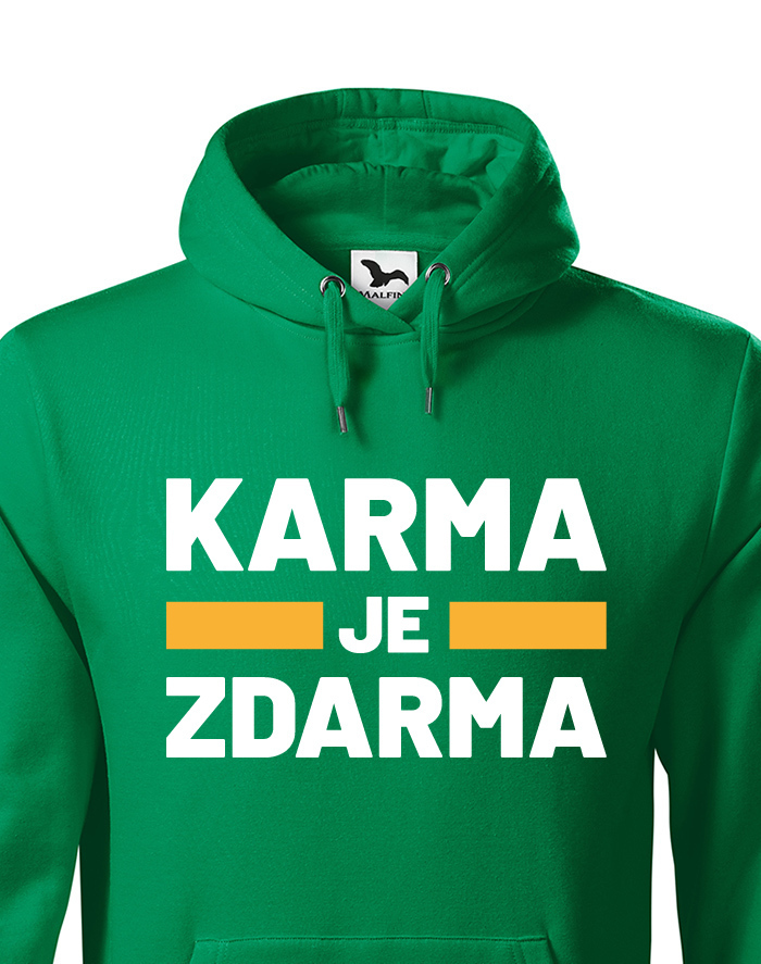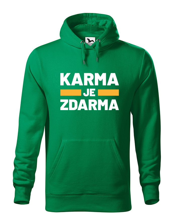 Karma je zdarma. Táto obľúbená hláška si našla cestu aj na naše vtipné mikiny s potlačou. Ak veríte na karmu, tak táto mikina bude jasnou voľbou. Vezmi si mikinu do školy alebo do práce, a ukáž všetkým, že pokiaľ Ťa niekto pravidelne štartuje, karma mu to určite vráti.