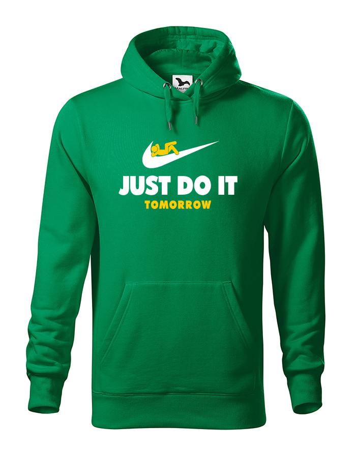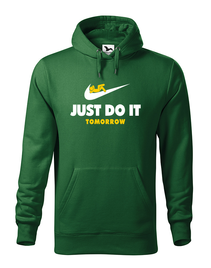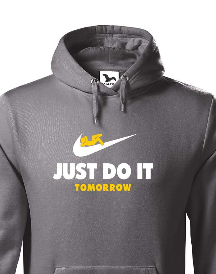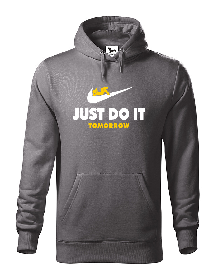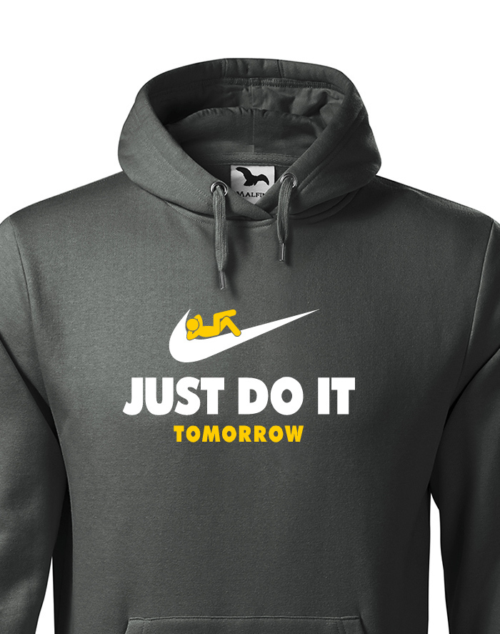 Čo môžeš urobiť zajtra, nerob dnes. Tak presne týmto porekadlom sme sa inšpirovali pri výrobe nášho motívu na mikinu. Vtipná potlač parodujúca značku NIKE si obľúbite, hlavne, ak vám šéf v práci naloží. Mikina s potlačou bude skvelá ako darček k Vianociam alebo narodeninám, ale kľudne i na bežné nosenie.