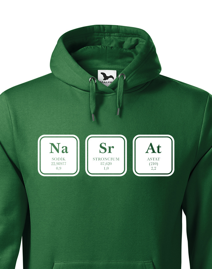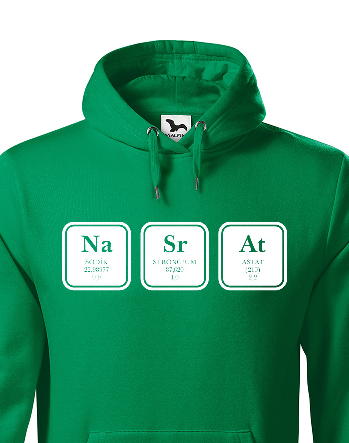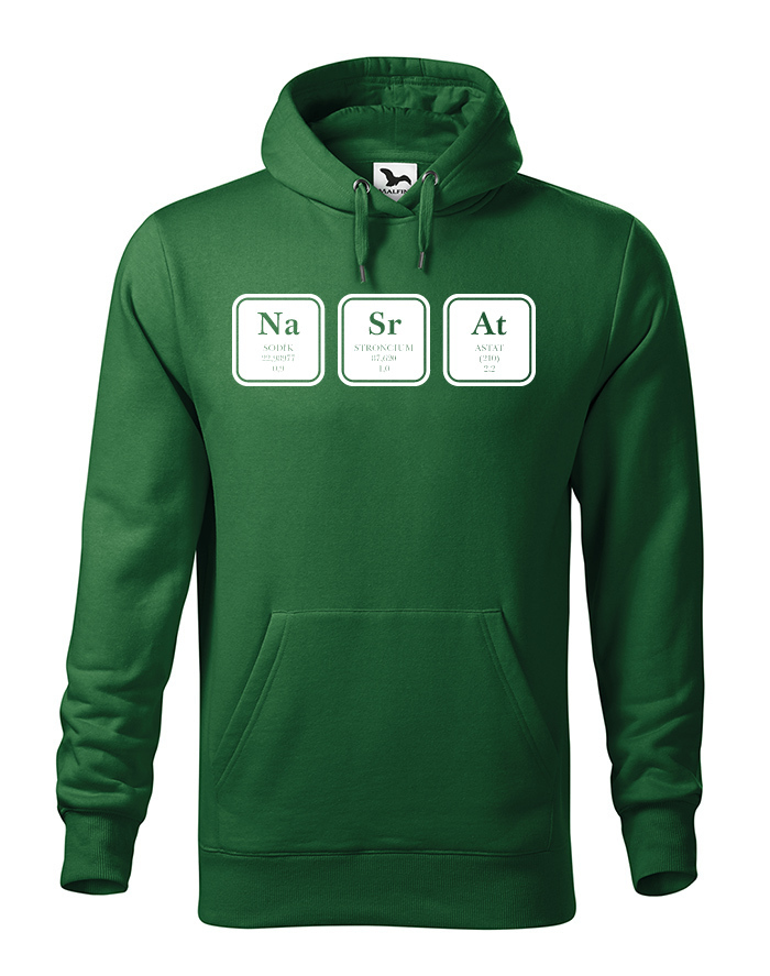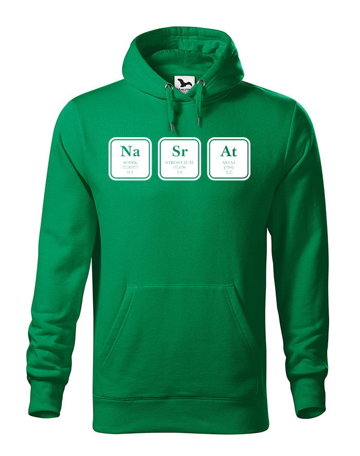 Vtipná mikina s chemickým vzorcom NaSrAt samozrejme nie je len o Sodíku, Stronciu a Astáte. ;) Mikina bude skvelá predovšetkým vo svojej čiernej variante alebo tmavom melíre. Neboj sa si mikinu s potlačou NaSrAt vziať do školy na hodinu chémie alebo fyziky. Ukážte všetkým, ako veľmi máte radi tieto predmety.