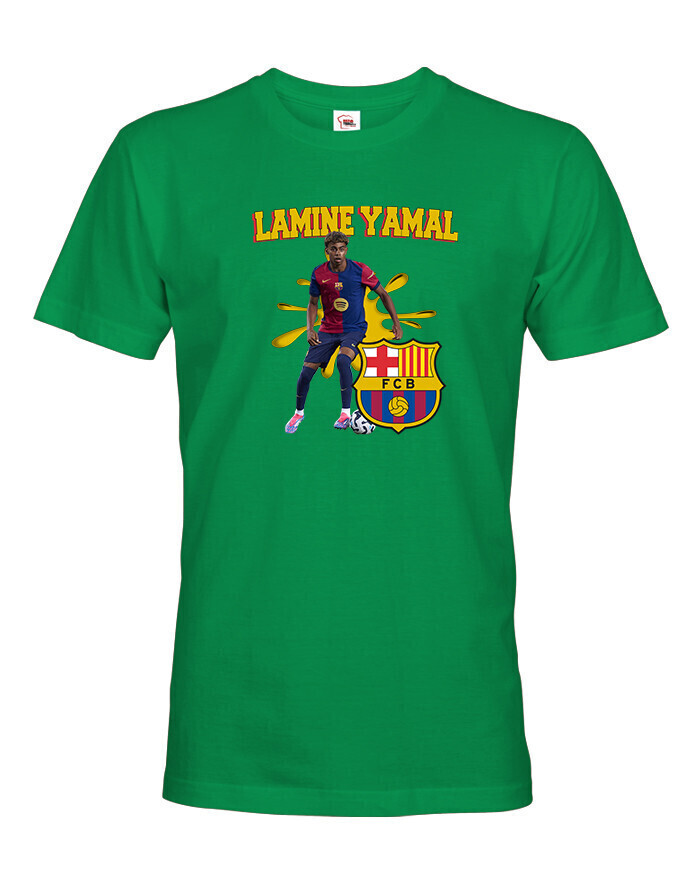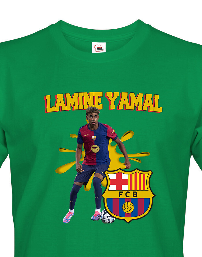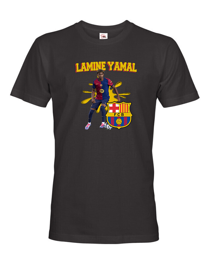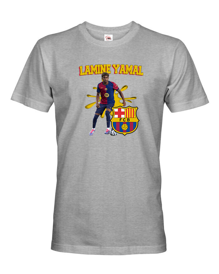 Pánske tričko s Lamine Yamalom v drese Barcelony je ideálnou voľbou pre futbalových fanúšikov a milovníkov talentu tohto mladého hráča. Tričko je vyrobené z kvalitnej a príjemnej bavlny, ktorá zaručuje maximálne pohodlie počas celého dňa. Klasický strih s okrúhlym výstrihom a krátkymi rukávmi dokonale padne na každú postavu, zatiaľ čo priedušný materiál zaručuje pohodlie aj počas športových aktivít alebo bežného nosenia. Prednej strane trička dominuje detailná potlač Jamala v drese jeho milovaného klubu FC Barcelona, ktorá zvýrazňuje jeho dynamiku a talent.