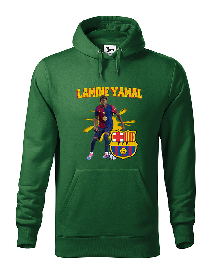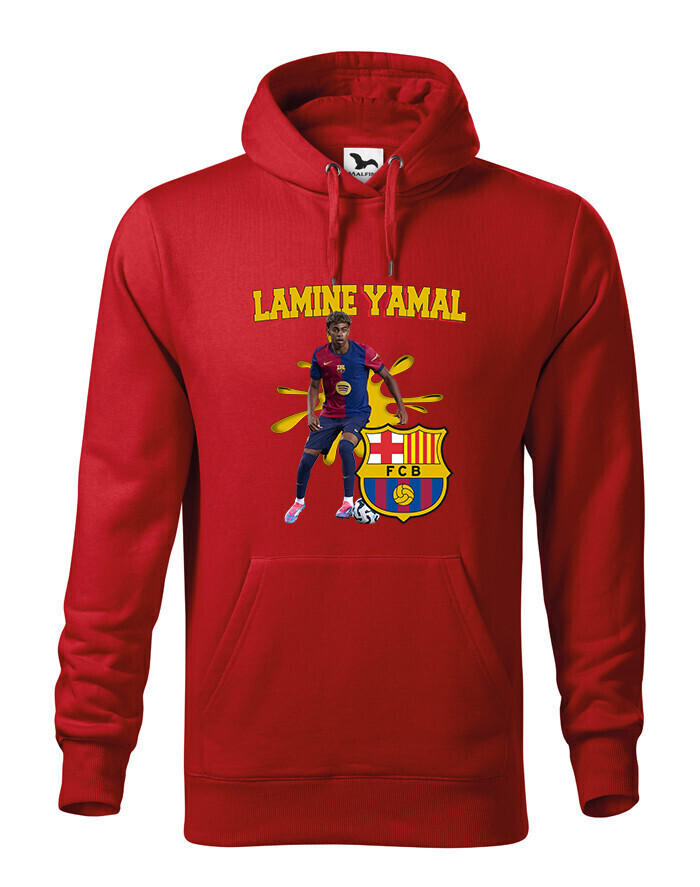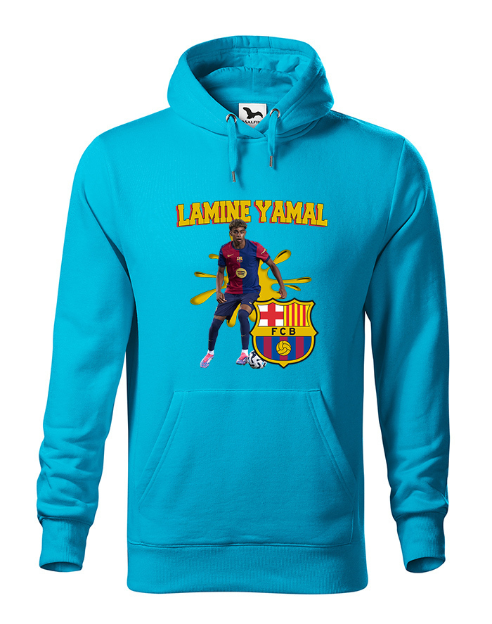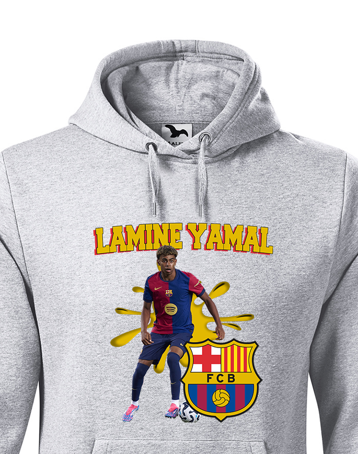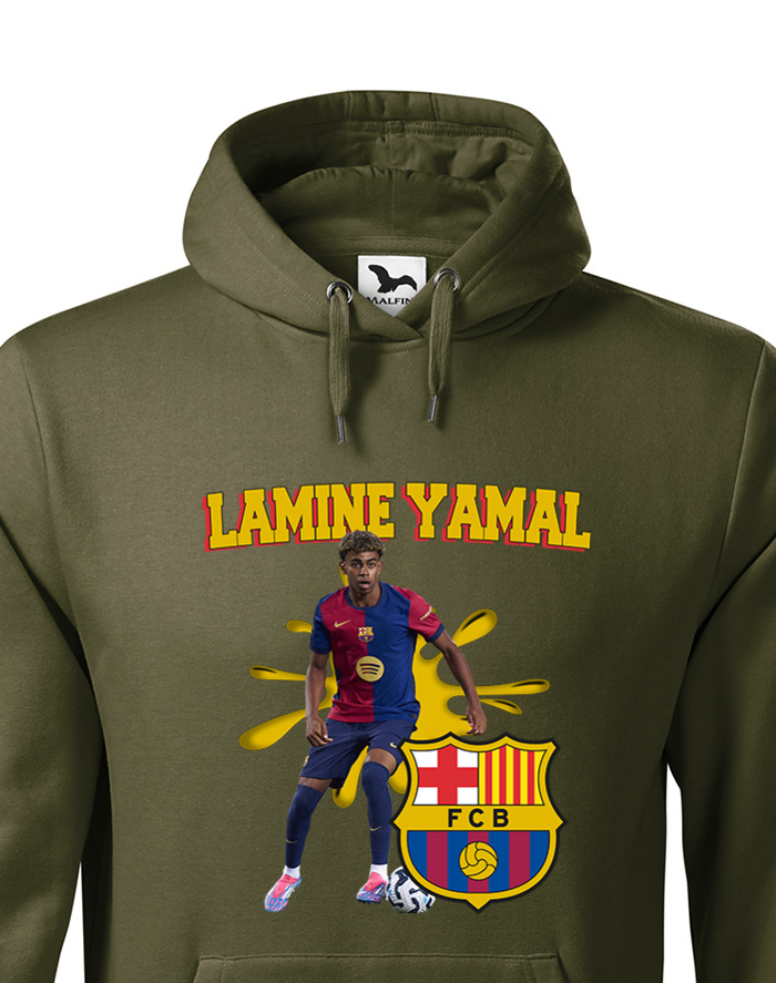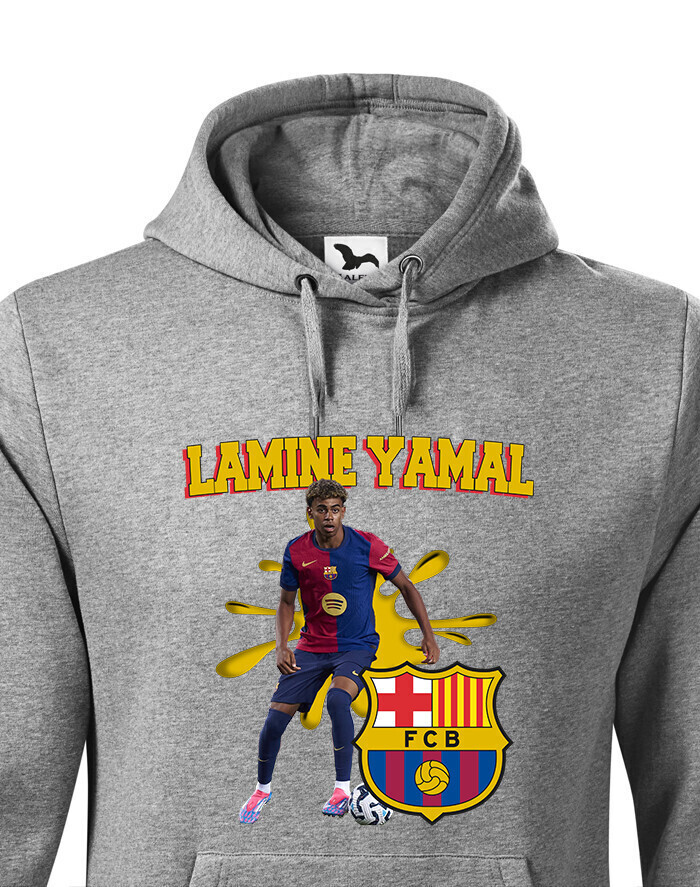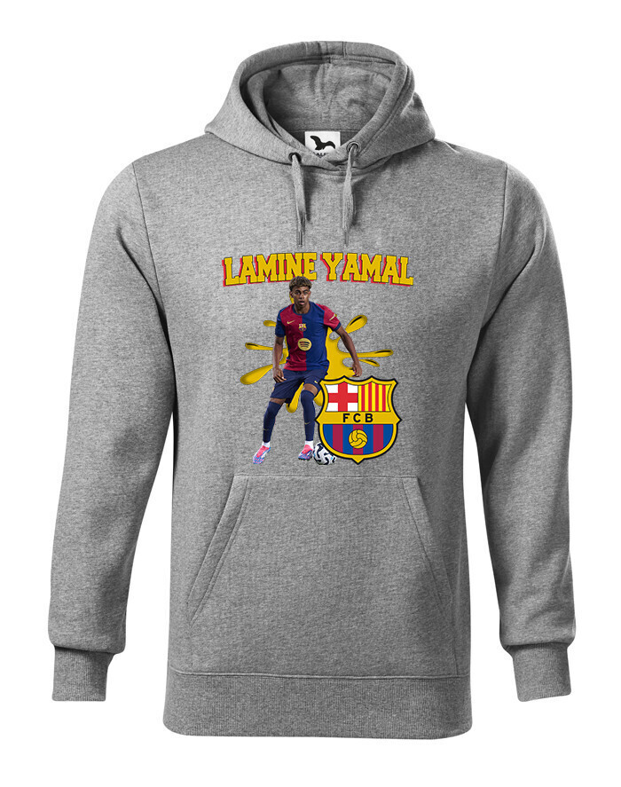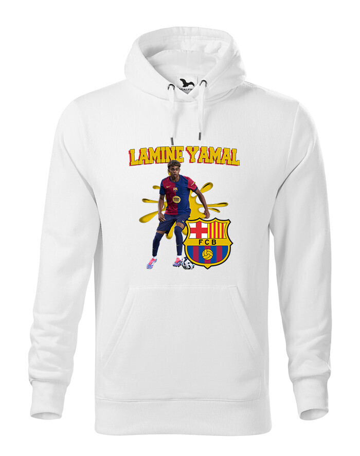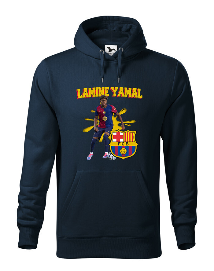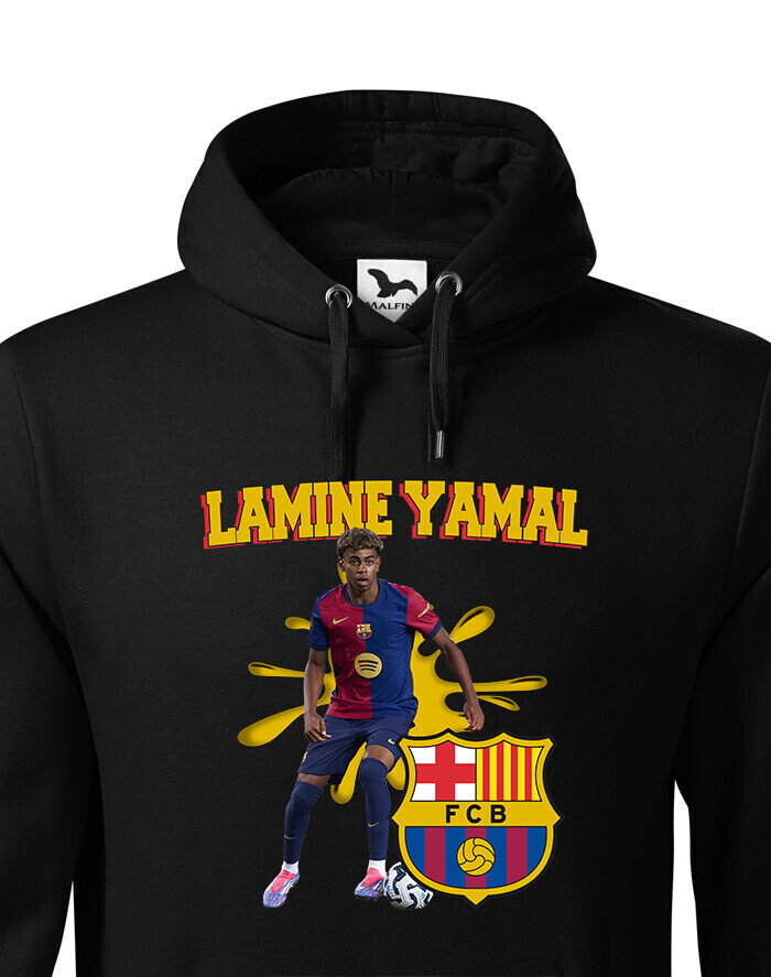 Predstavujeme štýlovú pánsku mikinu s exkluzívnym motívom Lamine Yamala v drese FC Barcelona. Táto mikina je ideálnou voľbou pre každého fanúšika katalánskeho veľkoklubu a obdivovateľa tohto mladého talentu, ktorý sa rýchlo stal jedným z najväčších prísľubov svetového futbalu. Mikina je vyrobená z prvotriednej zmesi bavlny a polyesteru, čo zaručuje maximálne pohodlie a odolnosť. Mäkký vnútorný materiál vás zahreje počas chladnejších dní, zatiaľ čo štýlová potlač Yamal na hrudi vám dodá nezameniteľný futbalový štýl.