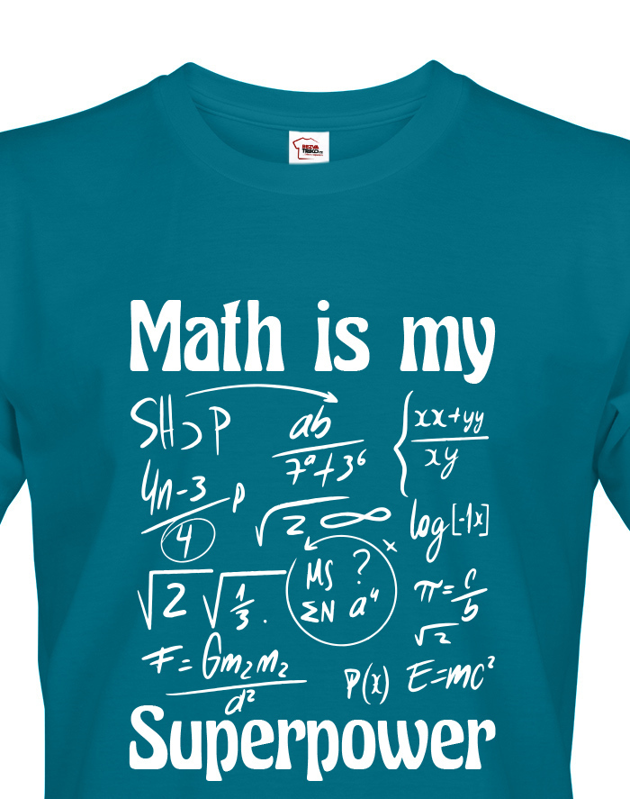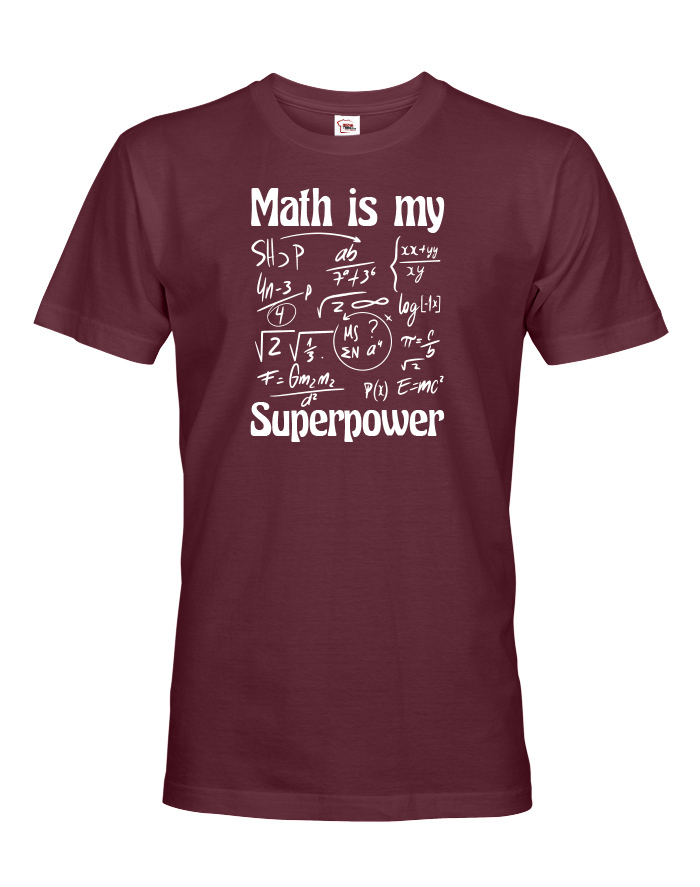 Hľadáte pánské tričko ako darček pre milovníkov matematiky alebo učiteľov matematiky? Tak potom toto pánské tričko s potlačou Math is my superpower je tým pravým darčekom na narodeniny alebo Vianoce. Potlač Math is my superpower je výstižným výrazom toho, že matika je silno spojená s vašimi záujmami a schopnosťami. Pokiaľ máte v okolí niekoho, pre koho je matematika naozaj veľmi dôležitá, tak toto tričko je to pravé. Oživte si svoj šatník s týmto originálnym tričkom. Potlač skvelo vynikne na čiernom, modrom alebo červenom tričku, ale vedľa nešliapnete ani s inou farebnou variantou.