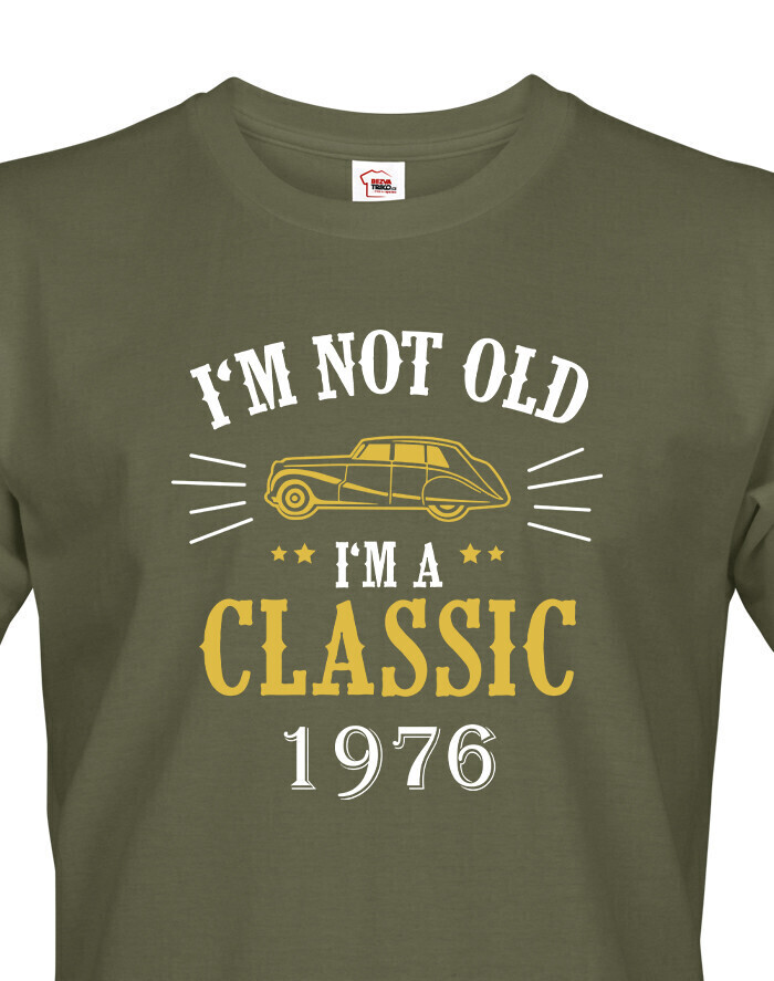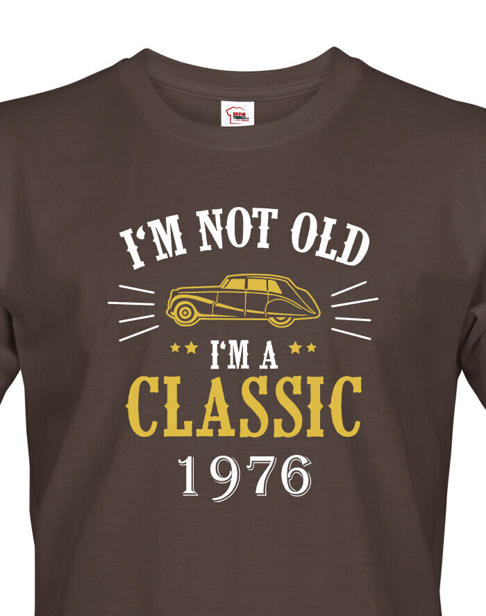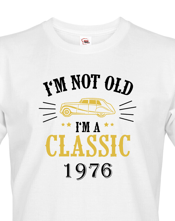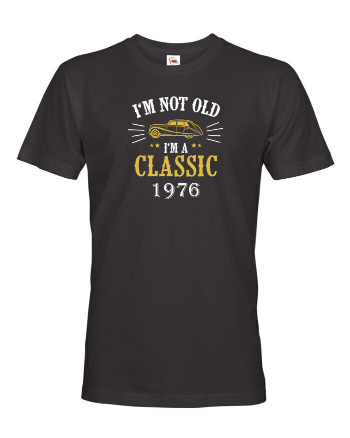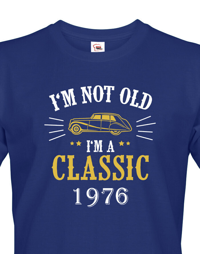 Ďalšie super narodeninové tričko pre pánov, tentokrát s potlačou I'm Not Old I'm Classic. Tričko je ako inak k dispozícii s voliteľným rokom, takže nezabudnite napísať do poznámky. Tričko bude skvelé nie len pre milovníkov áut k narodeninám. Tento darček k narodeninám poteší každého muža. Potlač v angličtine urobí radosť každému, kto má radšej modernejšiu grafiku trička.