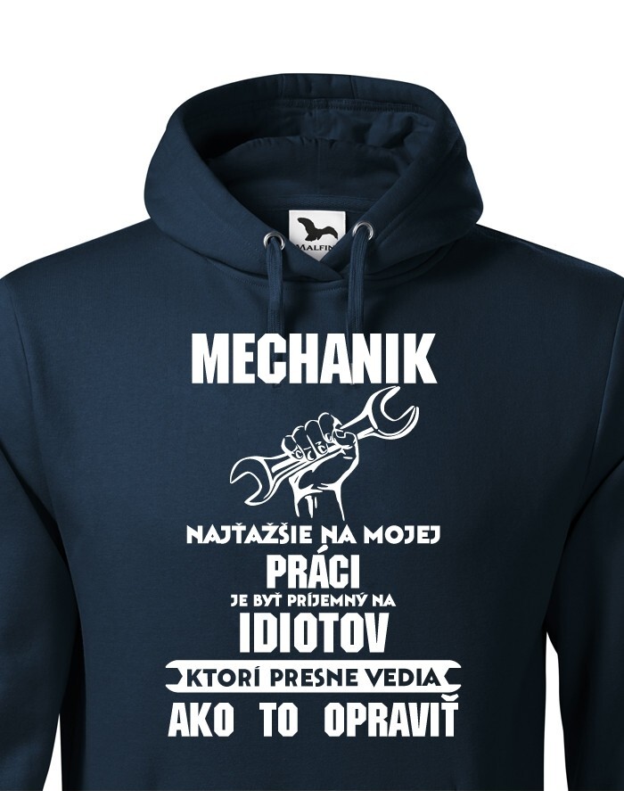 Práca mechanika je tvrdá rehoľa. A čo je najťažšie? No predsa byť príjemný na idiotov, ktorí presne vedia ako to opraviť! Táto mikina pre mechanikov bude skvelým darčekom k Vianociam alebo narodeninám.