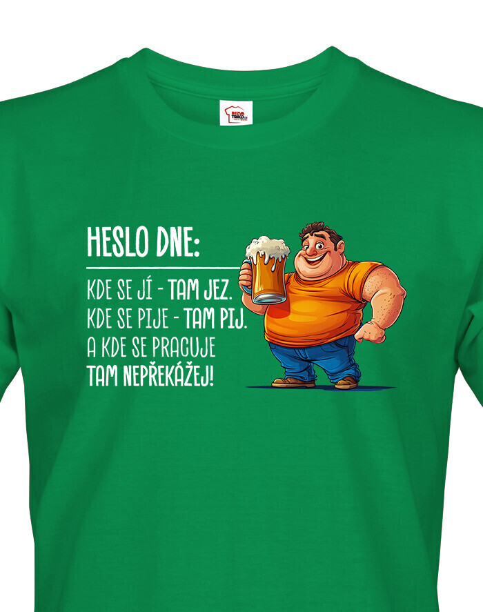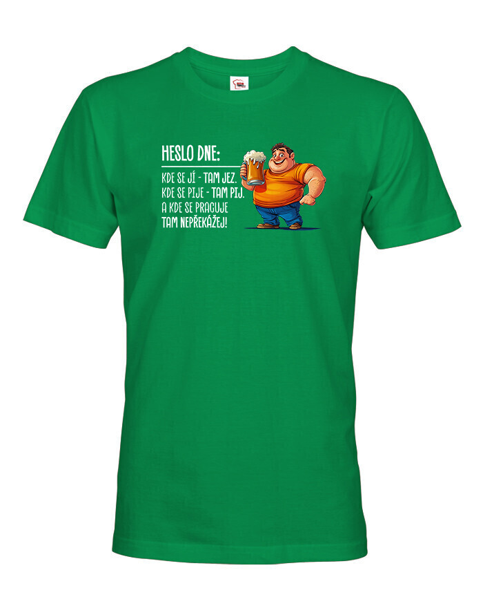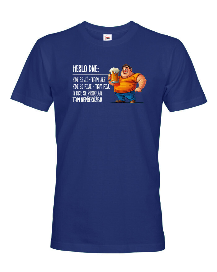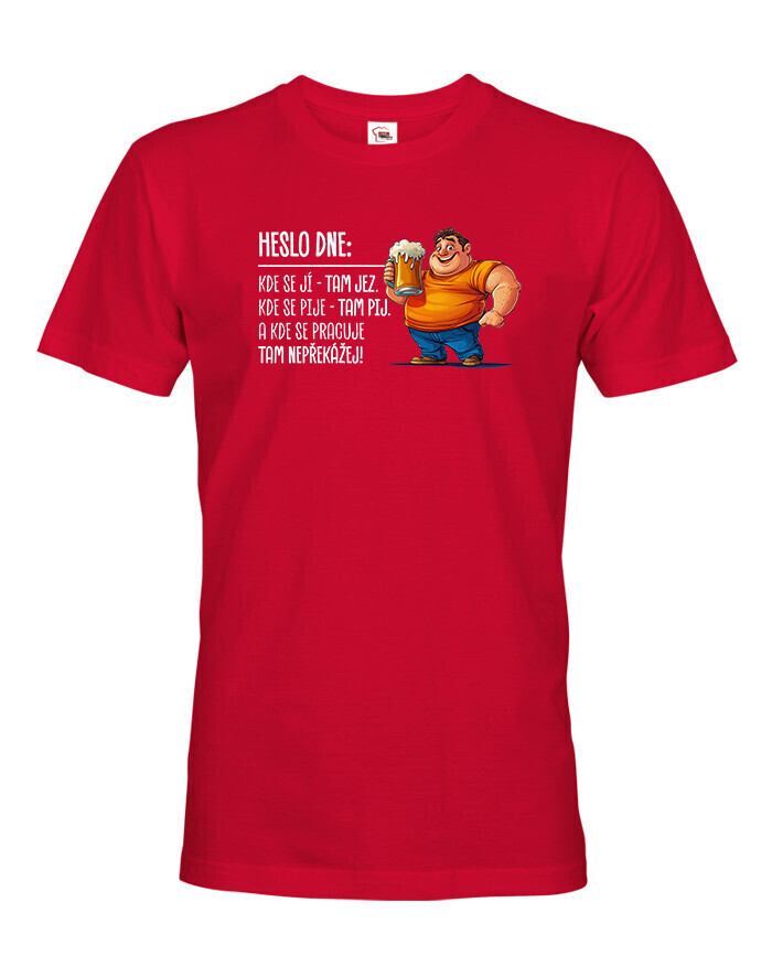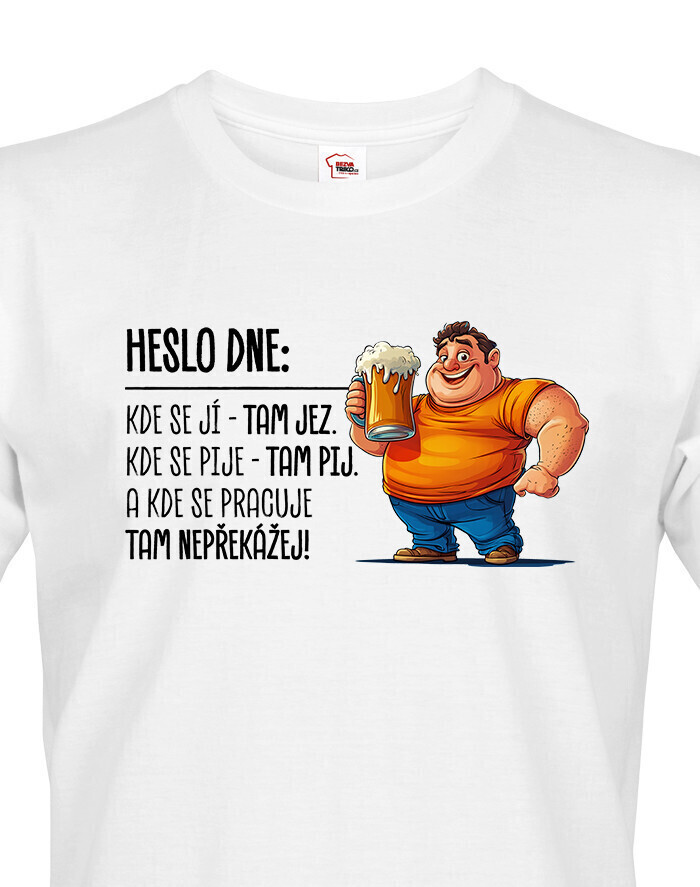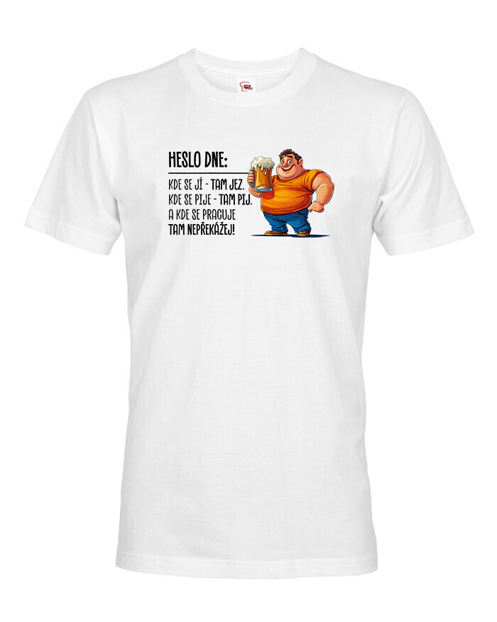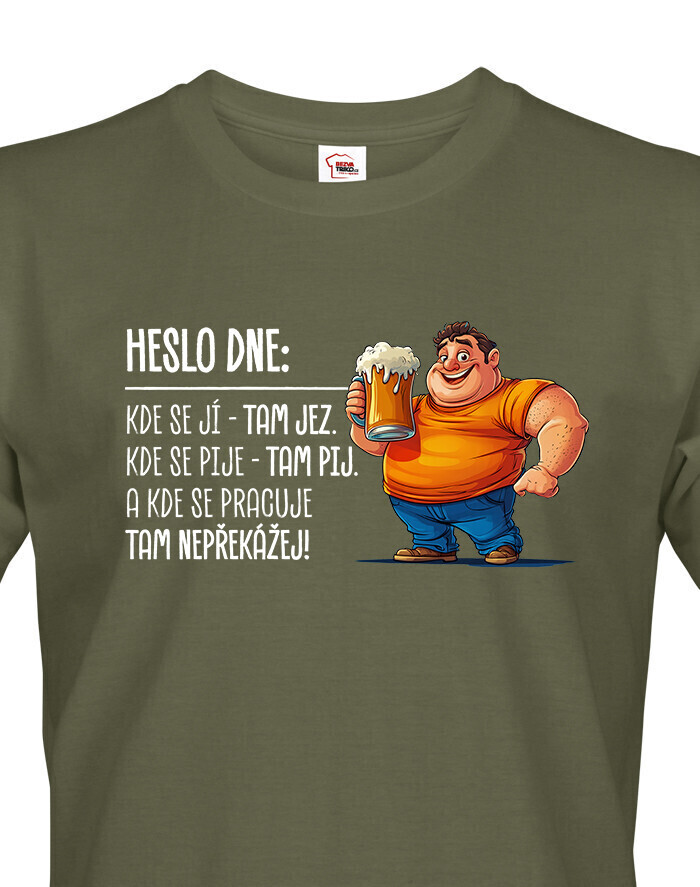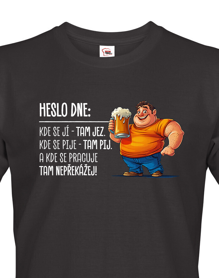 V Česku koupíte tento produkt zde: Pánské tričko Heslo dne – Jez, pij, nepřekážej
