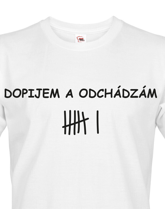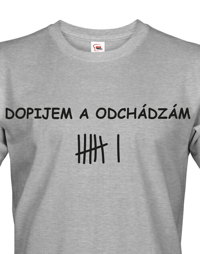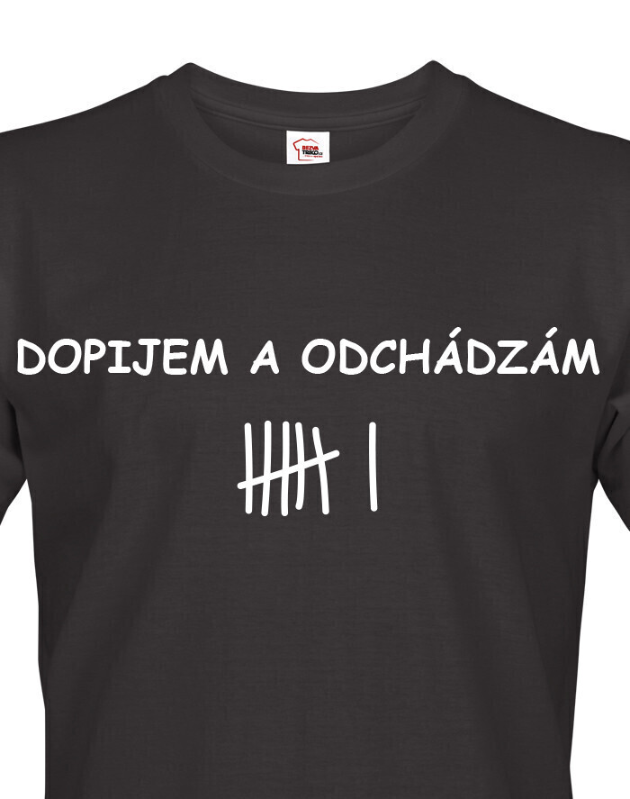 Viete, čo je najväčšia lož českého národa? No, "idem na jedno pivo". :) No, trochu za tým je "dopijem a idem". S týmto motívom sme vytvorili tričko so zábavnou potlačou. Tričko má decentný nápis na hrudi a vedľa menšieho plotu, sa už samozrejme rozširuje ďalší riadok. Tričko bude skvelé do krčmi, alebo ako darček pre otca, priateľa alebo starého otca.