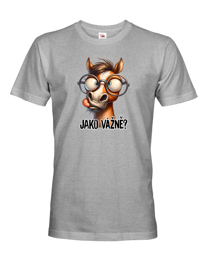 Ukažte svůj smysl pro humor a osobitý styl s naším pánským trikem s motivem vtipného koně a nápisem "Jako vážně?". Toto triko je vyrobeno z prémiové bavlny, která zaručuje maximální pohodlí a trvanlivost. Díky své kvalitě je ideální pro každodenní nošení, ať už se chystáte do práce, na procházku nebo na večerní posezení s přáteli.