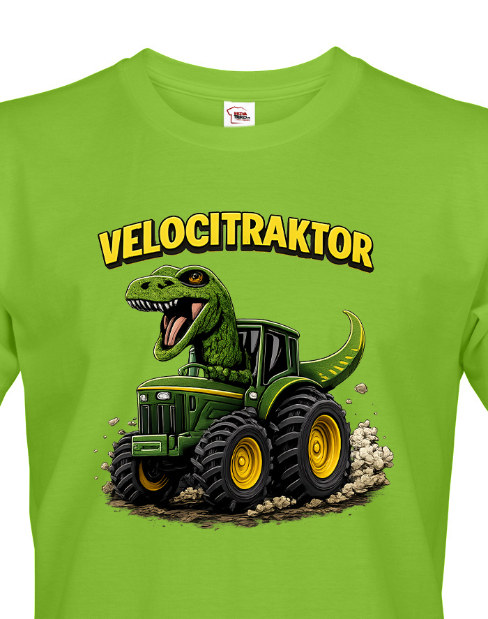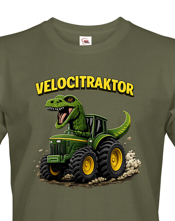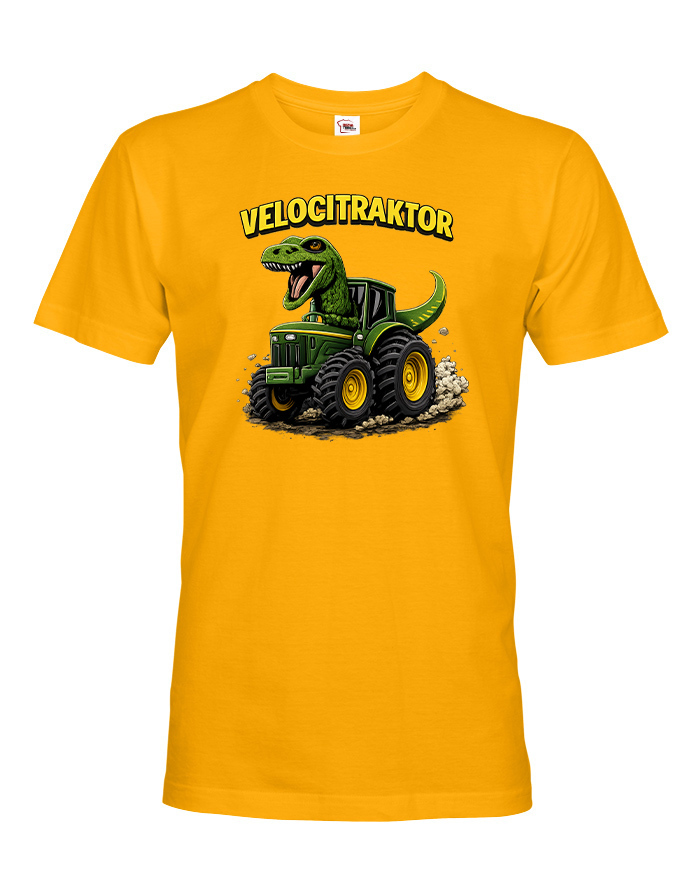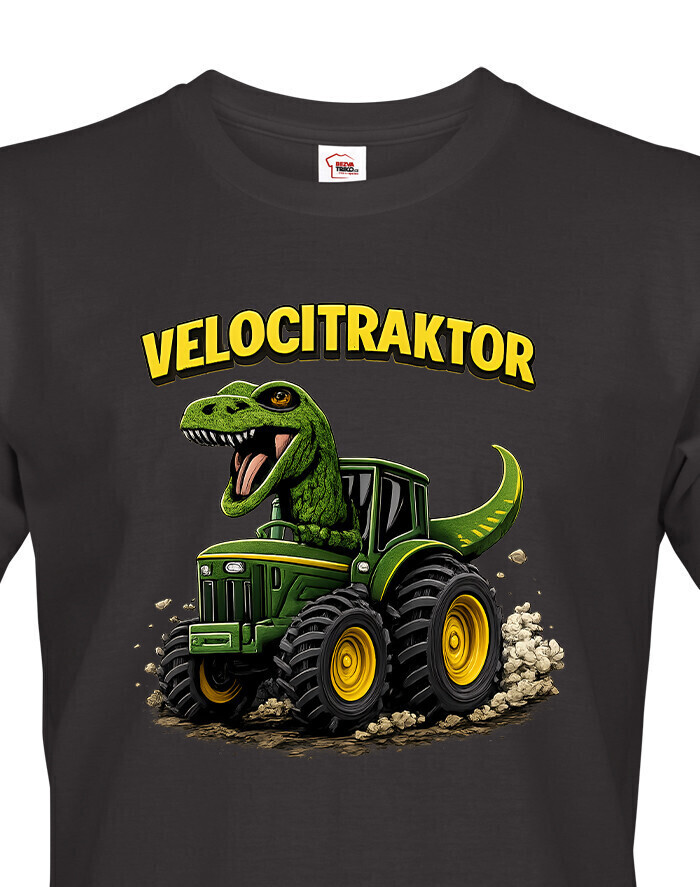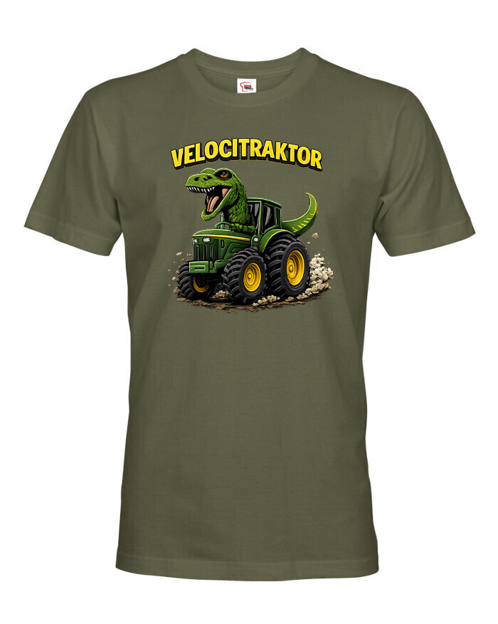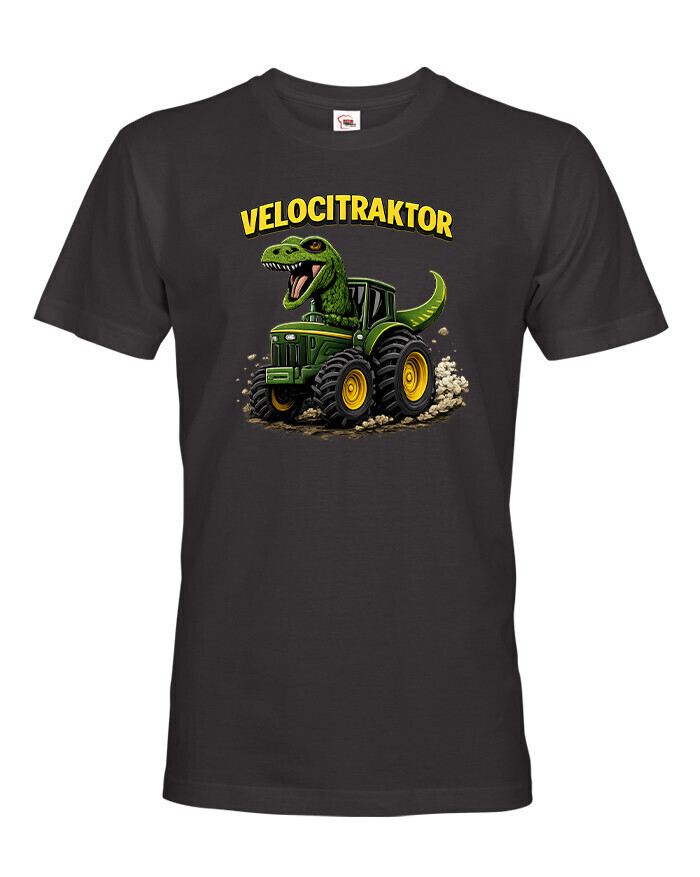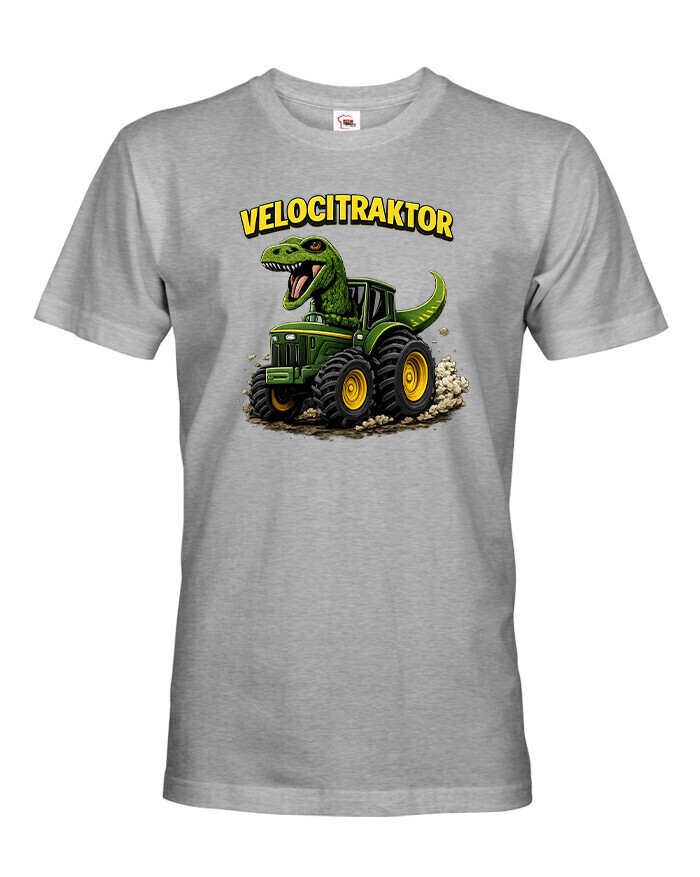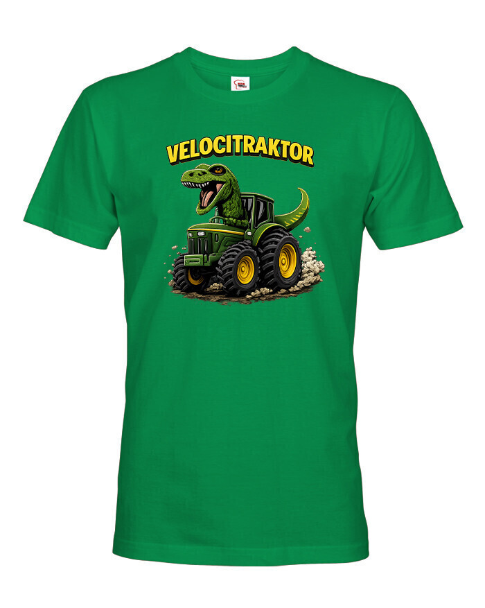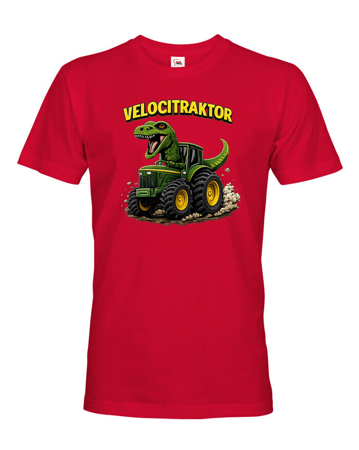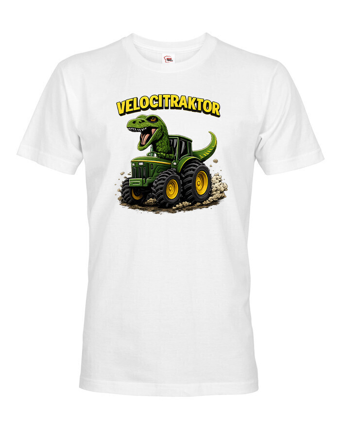 Pánske tričko s motívom Velocitraktor je zábavný a originálny kúsok, ktorý spája svet dinosaurov a mohutných traktorov. Výrazná a farebná potlač zobrazuje veľkého Tyrannosaura riadiaceho zelený traktor, ktorý okamžite upúta pozornosť. Tričko je určené pre mužov so zmyslom pre humor, fanúšikov dinosaurov, farmárskeho života alebo originálnych dizajnov. Vďaka kvalitnému a pohodlnému materiálu je vhodné na celodenné nosenie, či už doma, vo meste alebo na výletoch. Skvelo sa hodí na bežné nosenie, stretnutia s priateľmi, tematické akcie alebo voľný čas. Zároveň je to skvelý darček k narodeninám, Vianociam alebo meninám, ktorý pobaví a poteší každého muža. Tričko sa dá jednoducho kombinovať s džínsami, kraťasmi alebo mikinou. Ide o štýlový a výrazný kúsok, ktorý dodá outfitu hravý a jedinečný charakter. Motív Velocitraktor ukazuje originalitu a zmysel pre zábavu, ideálne pre mužov, ktorí chcú vyniknúť a nosiť oblečenie s humorom.