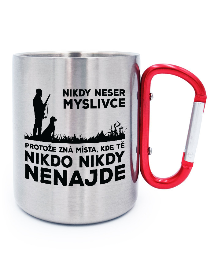Nerezový hrnek s karabinou Nikdy neser myslivce