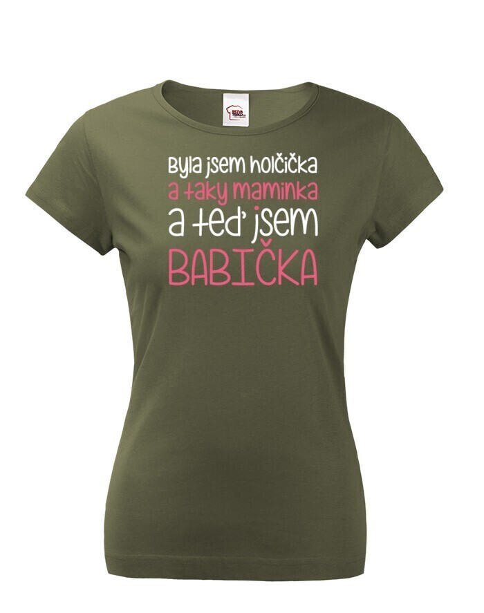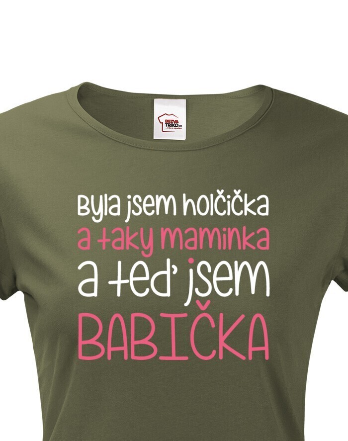 "Bola som dievčatko a tiež mamička a teraz som babička" bude skvelým motívom na tričko pre každú babičku. Tričko urobí radosť babičke ako darček k narodeninám alebo Vianociam.