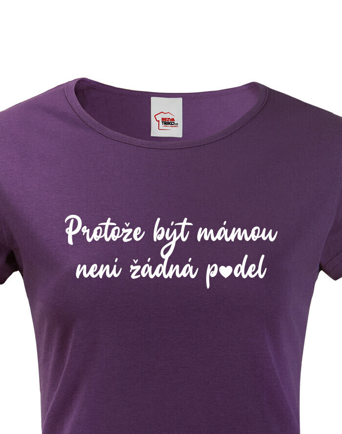 Toto dámske tričko s nápisom „Pretože byť mamou nie je žiadna p*del“ je vtipným a úprimným vyjadrením každodennej reality materstva. Je určené pre všetky ženy, ktoré majú zmysel pre humor a neboja sa ukázať, že byť mamou je niekedy poriadna výzva. Tričko je vyrobené z mäkkej a priedušnej bavlny, ktorá zaručí pohodlie počas celého dňa – či už pri naháňačke s deťmi, alebo pri zaslúženom oddychu. Kvalitná potlač vydrží aj časté pranie a nestráca farbu ani tvar. Moderný strih zvýrazní ženské krivky a skvelo sa hodí k rifliam, legínam či šortkám. Toto tričko je ideálne na bežné nosenie, voľný čas, posedenie s kamarátkami alebo ako originálny darček pre maminku, kamarátku či partnerku, ktorá si zaslúži uznanie za svoju každodennú super silu. Je to vtipný, pohodlný a úprimný kúsok, ktorý určite vyčarí úsmev. Každá maminka, ktorá ho oblečie, dá jasne najavo, že materstvo je poriadna jazda – ale stojí za to!