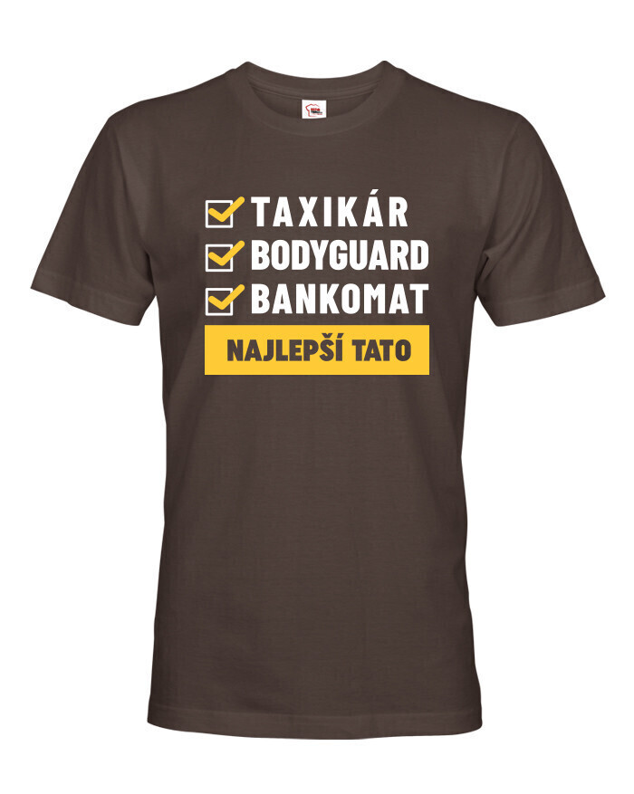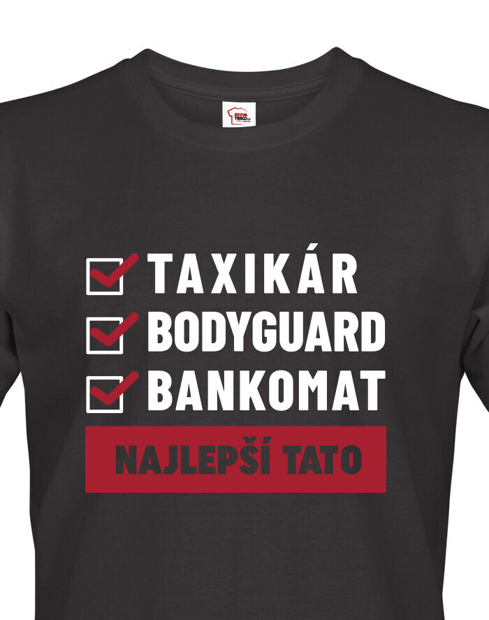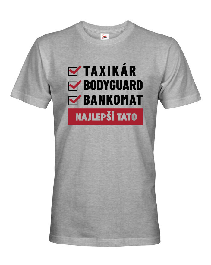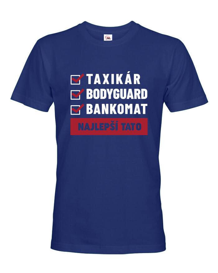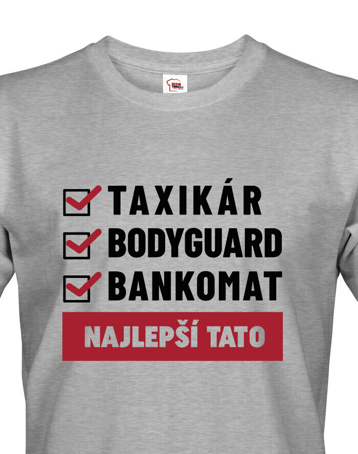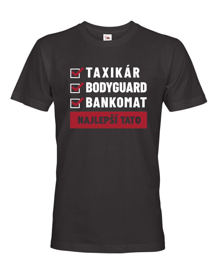Ideálne tričko pre každého skvelého tata. Tričko urobí radosť na meniny, k narodeninám alebo Vianociam. Potlač s výčtom vlastností toho NAJLEPŠIEHO tata - taxikár, bodyguard a bankomat urobí naozajstnú parádu. No povedzte sami, nepripomína vám tá potlač niečo? Ak ste sa našli, máte skvelý darček na dosah.