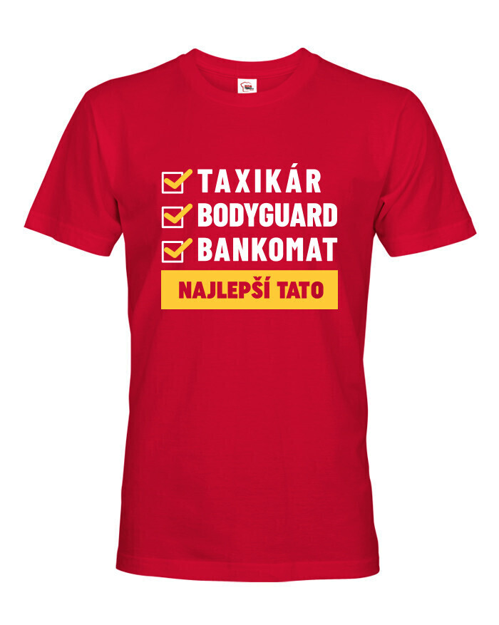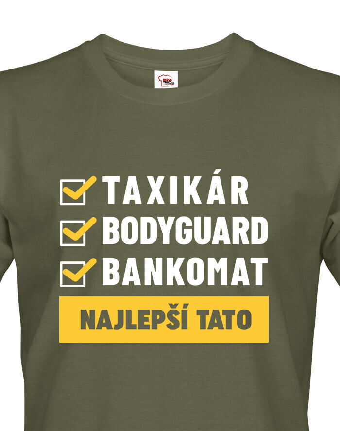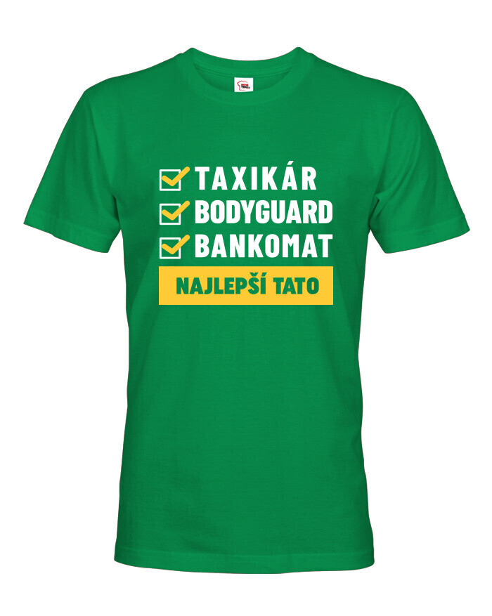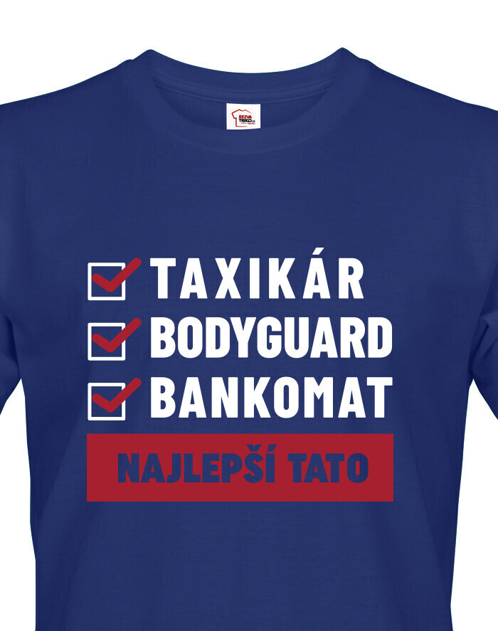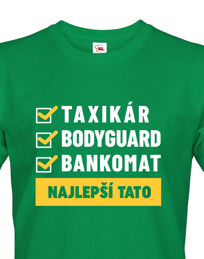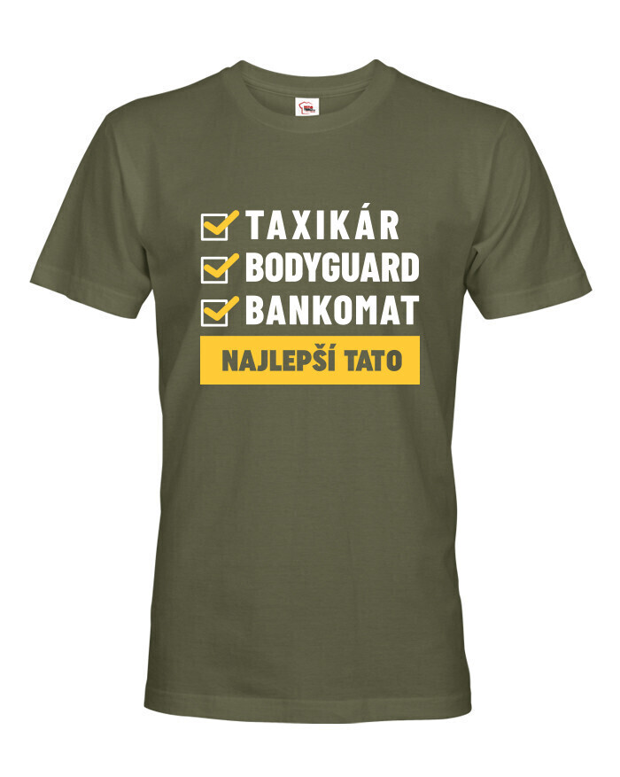 Ideálne tričko pre každého skvelého tata. Tričko urobí radosť na meniny, k narodeninám alebo Vianociam. Potlač s výčtom vlastností toho NAJLEPŠIEHO tata - taxikár, bodyguard a bankomat urobí naozajstnú parádu. No povedzte sami, nepripomína vám tá potlač niečo? Ak ste sa našli, máte skvelý darček na dosah.