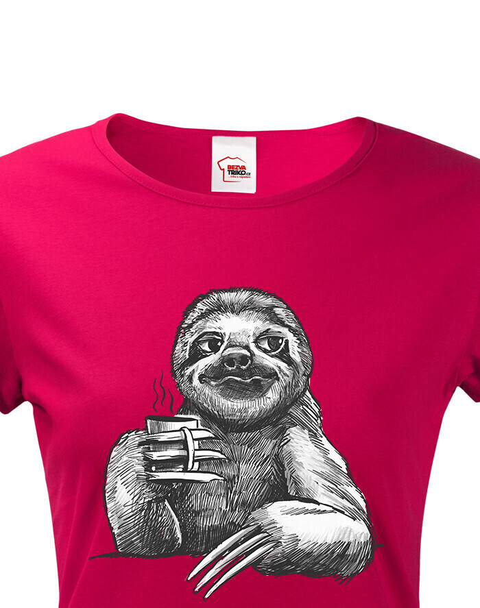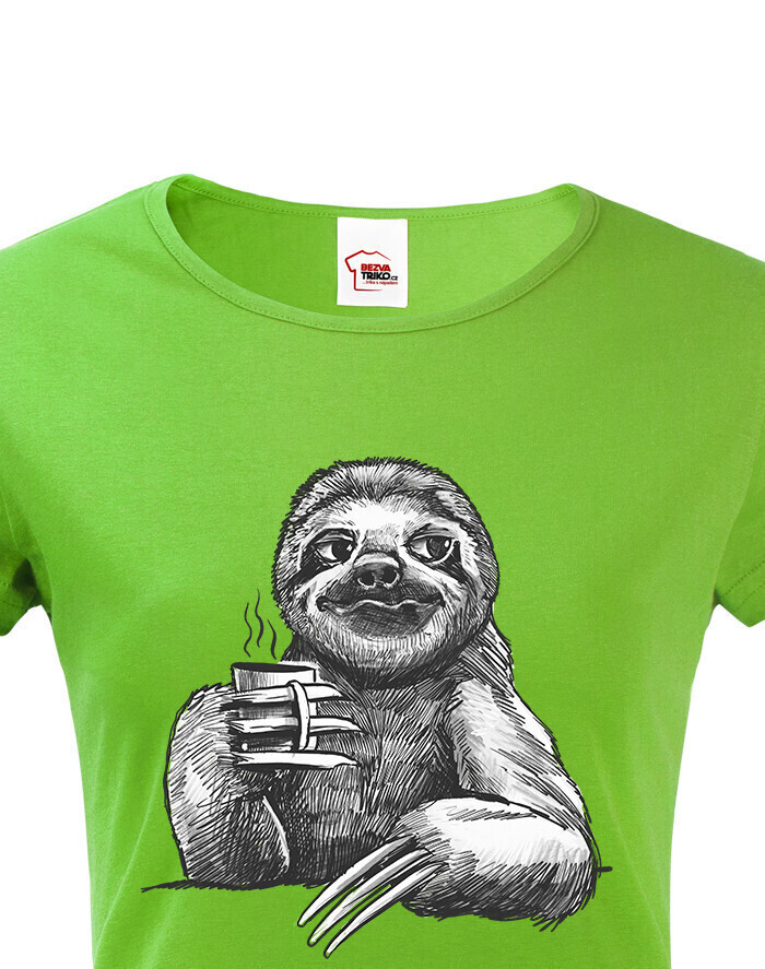 Dámské tričko Lenochod s kávou