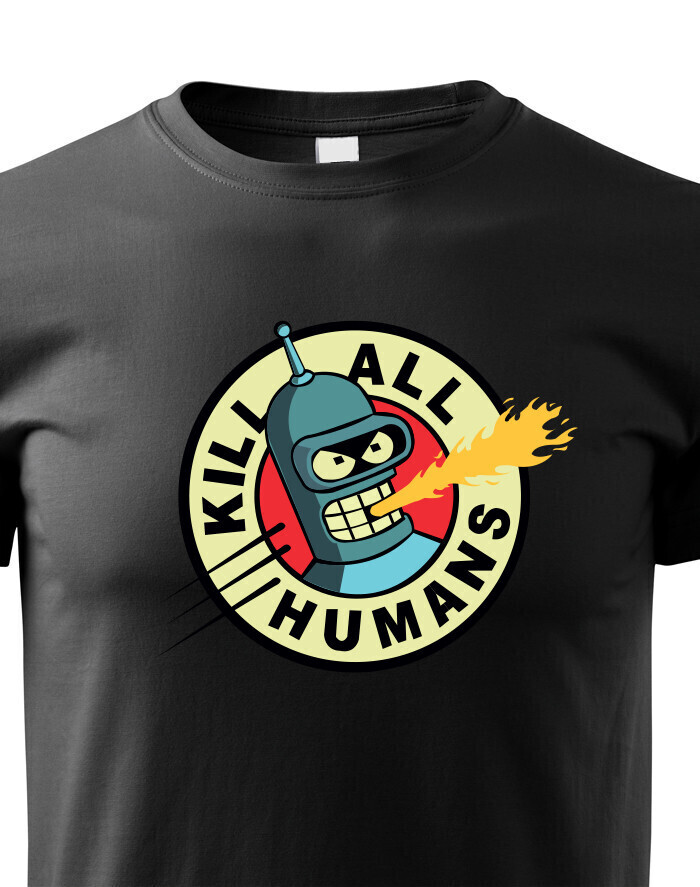 Oblečte svoje dieťa do štýlového trička, ktoré zaručene vyčarí úsmev na tvári každého fanúšika kultového seriálu Futurama! Toto jedinečné tričko nesie ikonickú potlač Bendera, nezabudnuteľného robota s drsným zmyslom pre humor a nesmrteľnou replikou Kill All Humans. Je to perfektný kúsok pre malých i veľkých nadšencov tohto jedinečného animovaného sci-fi seriálu. Ak máte doma malého fanúšika Futuramy, toto tričko je pre neho ako stvorené! Bender je jednou z najobľúbenejších postáv v seriáli a jeho nezameniteľný humor a osobnosť sú zachytené v tejto veselej a nápaditej potlači. Tričko je ideálne na každodenné nosenie, do školy, na ihrisko, alebo ako darček pre každého mladého milovníka sci-fi a komédie. Objednajte si ešte dnes a nechajte svoje dieťa zažiariť v štýle Futuramy!