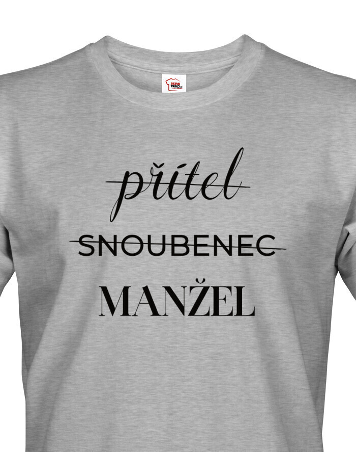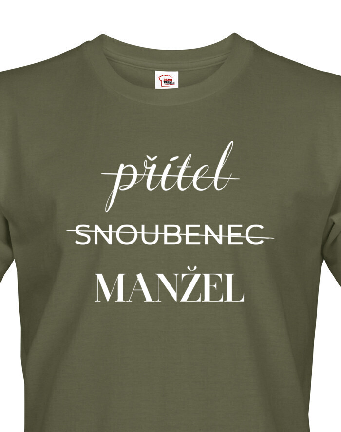 V Česku koupíte tento produkt zde: Pánské tričko Přítel - Snoubenec - Manžel