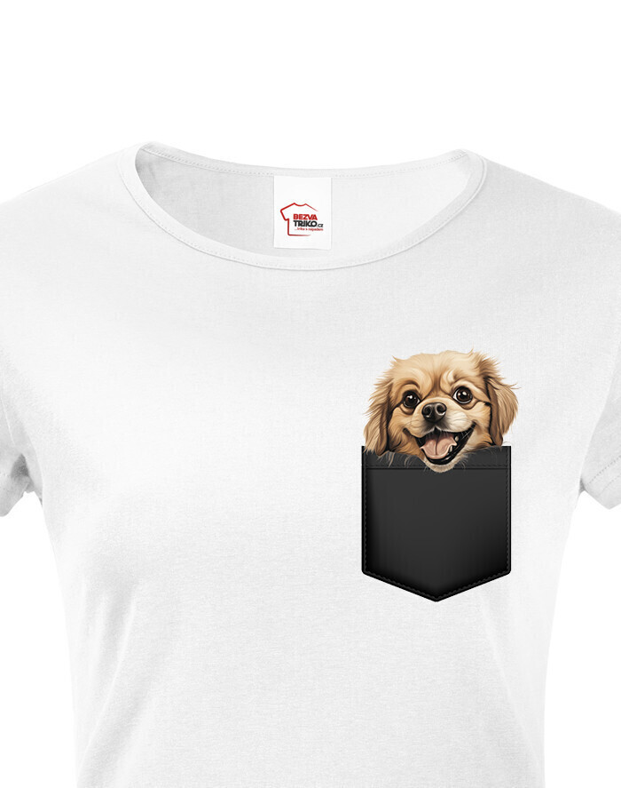 V Česku koupíte tento produkt zde: Dámské tričko Tibetský španěl v kapsičce