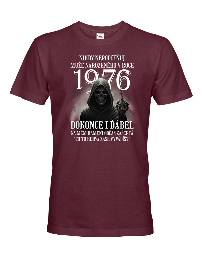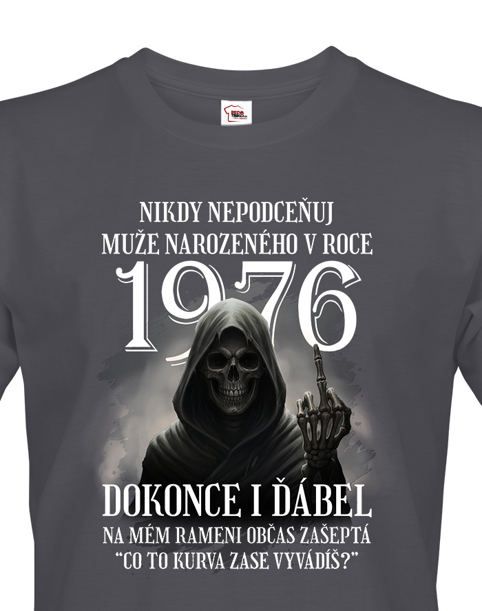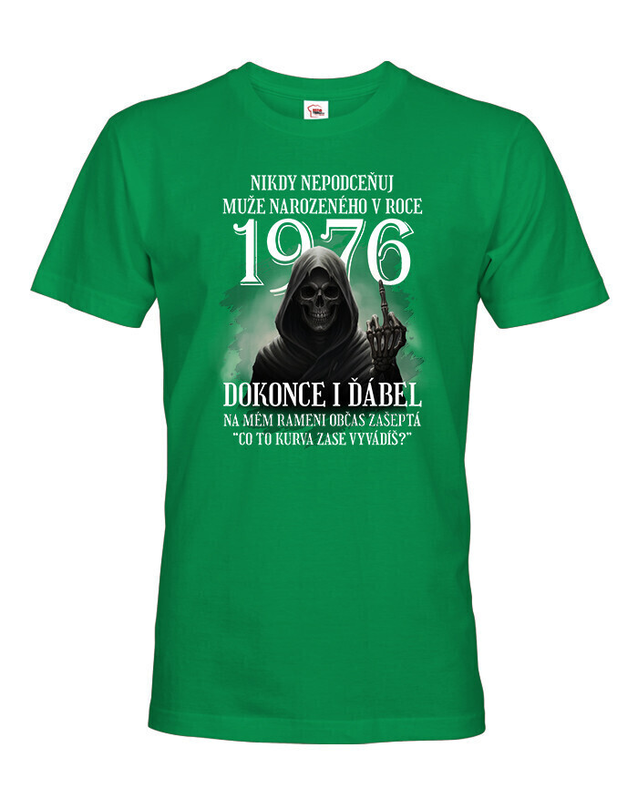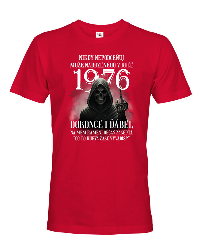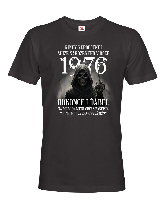 Pánske tričko s potlačou „Nikdy nepodceňuj muža narodeného v roku…“ je originálny a vtipný kúsok, ktorý dokonale vystihuje osobnosť každého chlapa s nadhľadom. Najväčšou výhodou tohto trička je, že vek (rok narodenia) je plne voliteľný, takže ho môžete prispôsobiť akémukoľvek ročníku – či už ide o 1980, 1975, 1990 alebo akýkoľvek iný rok. Vďaka tomu je tričko ideálnym a osobným darčekom pre mužov na narodeniny, Vianoce, meniny alebo len tak pre radosť. Potlač s diablom, ktorý dvíha prostredník, a hláškou „Čo to ku*va zase vyvádzaš?“ určite pobaví každého, kto má rád čierny humor. Tričko je vyrobené z kvalitnej 100% bavlny, ktorá zaručuje pohodlie a dlhú životnosť potlače. Skvele sa hodí na každodenné nosenie, oslavy, stretnutia priateľov alebo pivné akcie. Tento motív je určený pre mužov so zmyslom pre humor, odvahu a sebavedomie. Ak hľadáte vtipný, štýlový a zároveň osobný darček, toto tričko je perfektnou voľbou. Zvoľte si ľubovoľný rok narodenia a vytvorte jedinečný kúsok len pre neho!