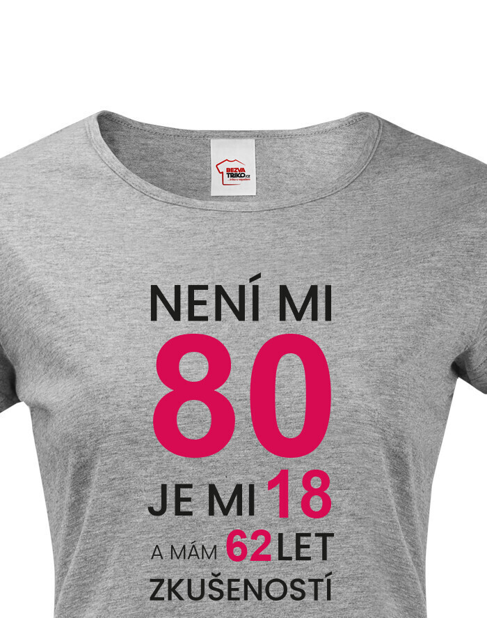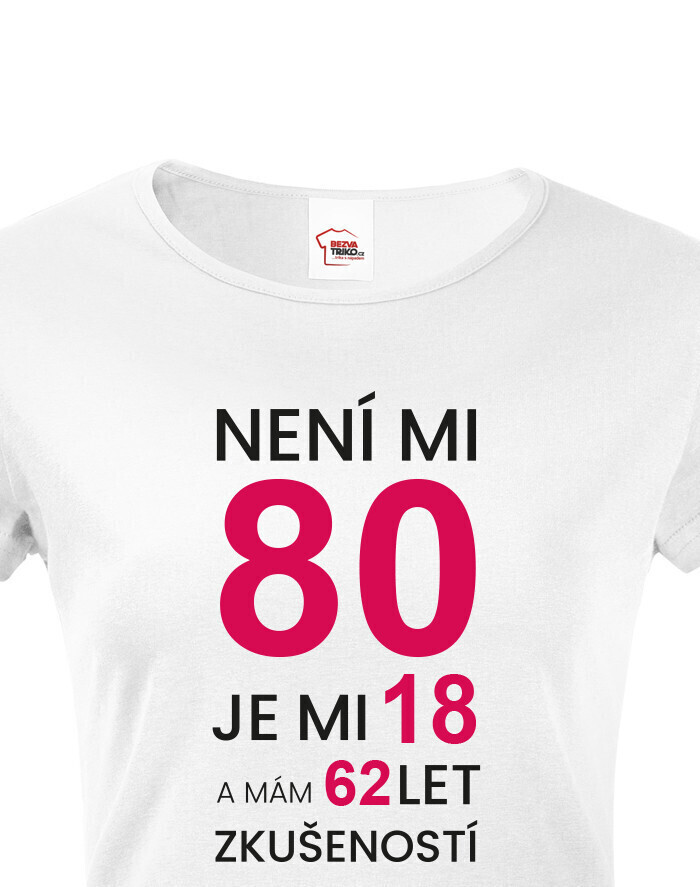 Osemdesiatka je krásne jubileum. Toto dámske tričko k 80. narodeninám oslavuje skúsenosti, silu a ženský šarm. Ideálne na oslavu aj ako milý darček od rodiny a priateľov.