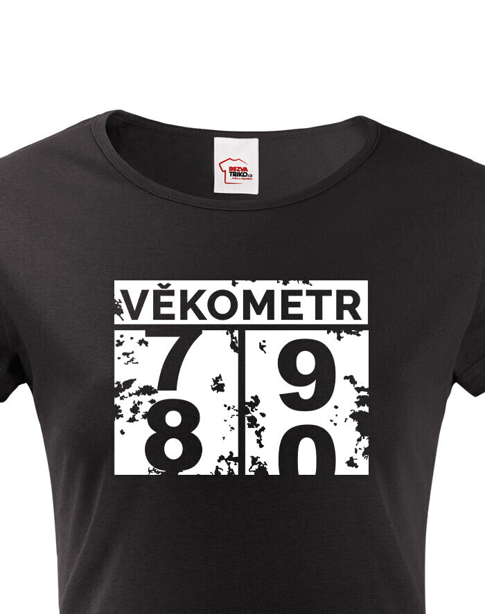 Motív „Vekometr“ zachytáva presný moment, kedy sa vek prekĺapne z 79 na 80. Tričko pobaví oslávkyňu aj všetkých okolo – 80 je len číslo, humor je večný!