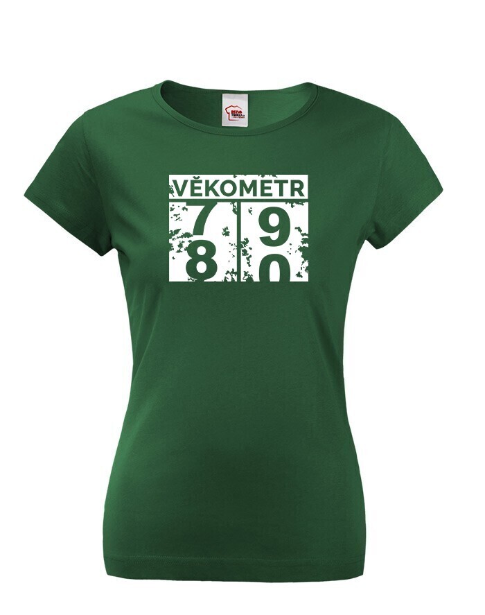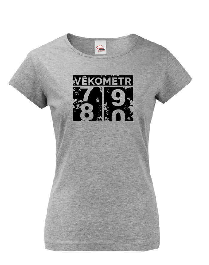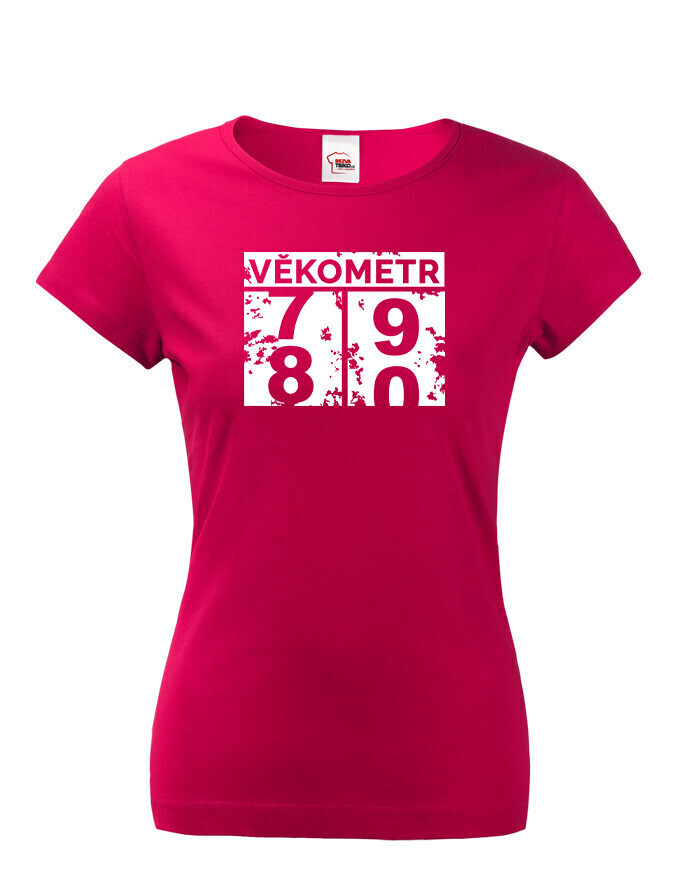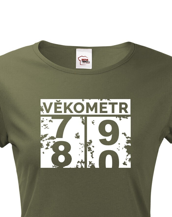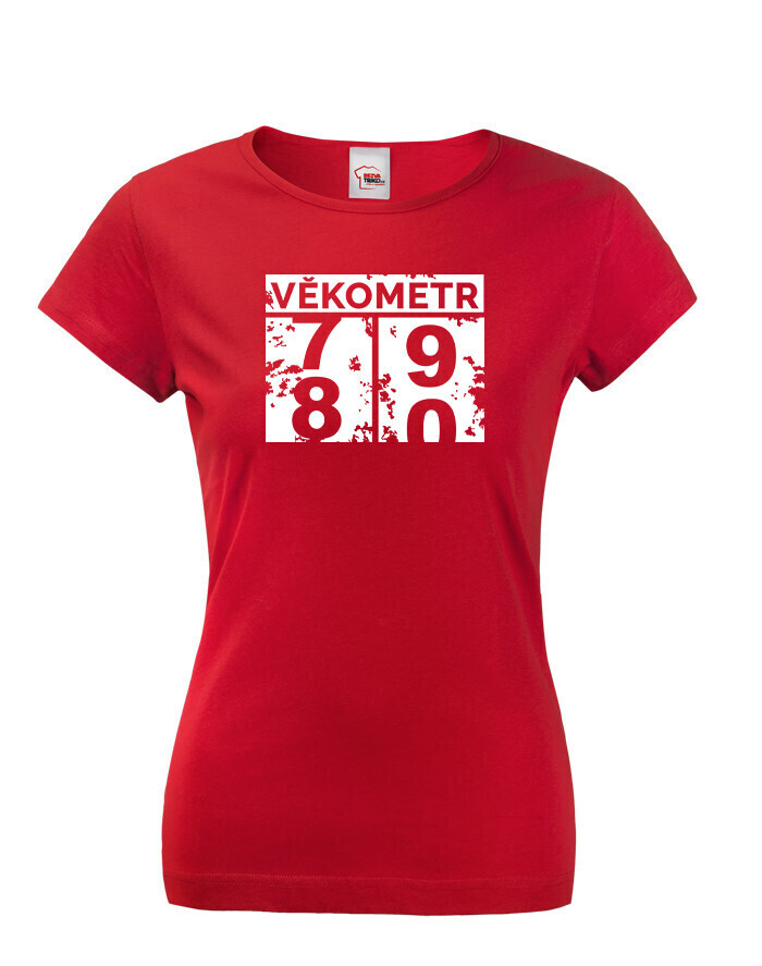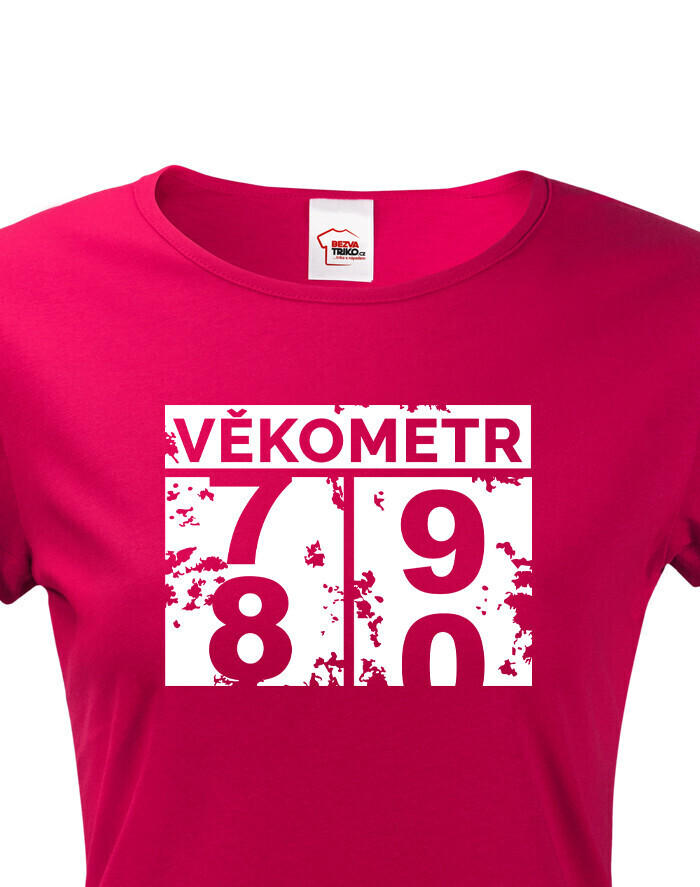 Dámske tričko Vekometr k 80. narodeninám - Keď sa vek prekĺapne z 79 na 80!