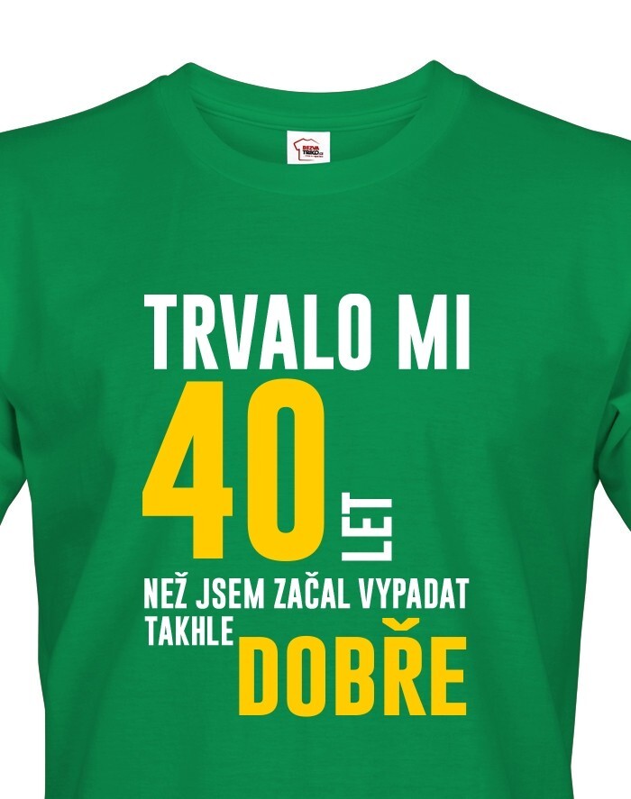 Pánske tričko k narodeninám "Trvalo 40 rokov, kým som začal vyzerať takto dobre" bude skvelým darčekom k 40. narodeninám pre otca, dedka ale aj brata! Nezabudnite nám napísať do poznámky vek, ktorý budeme na tričko tlačiť.