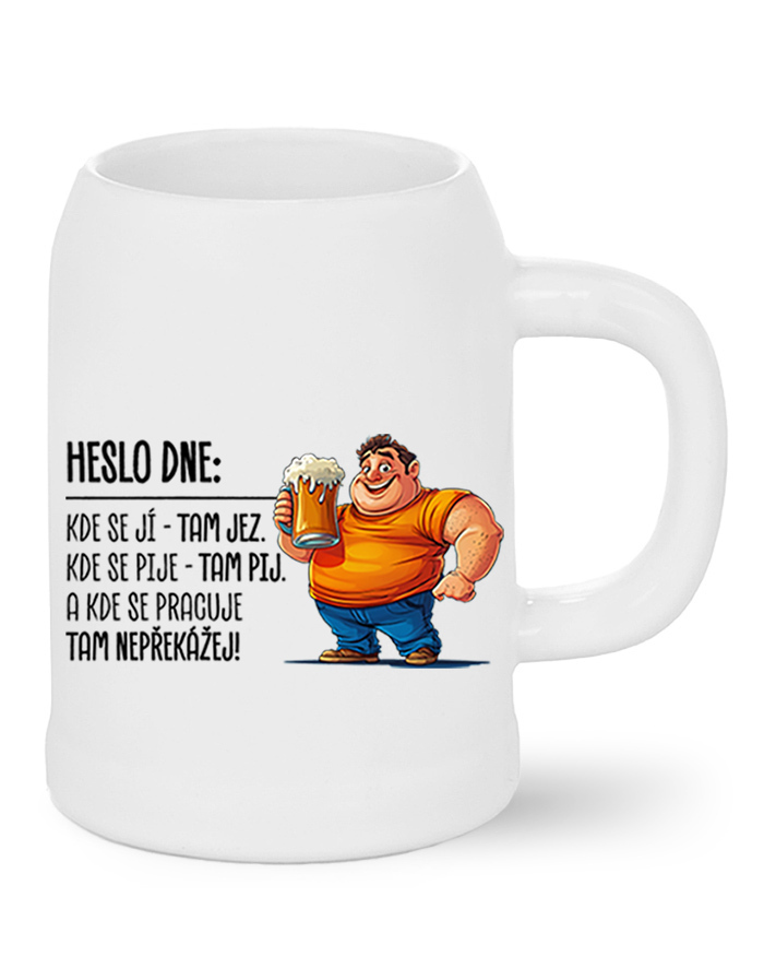 V Česku koupíte tento produkt zde: Pivní půllitr Heslo dne – Jez, pij, nepřekážej