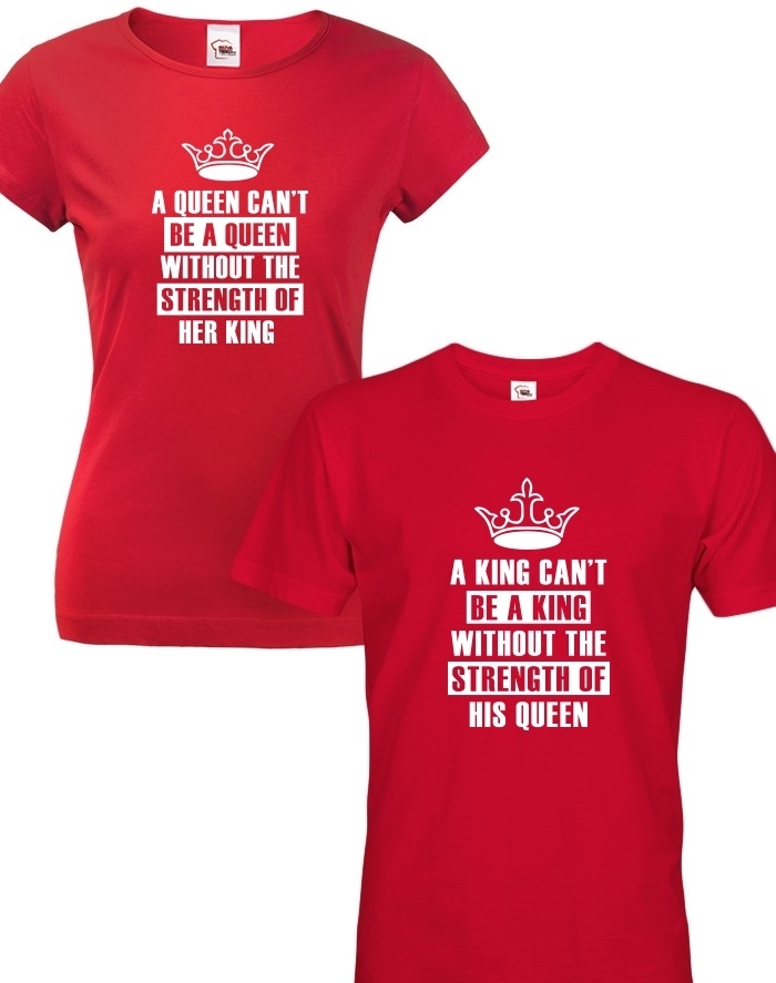 Kráľ by nebol kráľ bez svojej kráľovnej a jej sily, a to isté platí naopak. Tričká s anglickým textom pre všetkých kráľov a kráľovné budú skvelým darčekom na Valentína, ale urobiaí radosť aj len tak. Daruj tieto párové tričká a uvidíš, že urobia veľký kus parády.