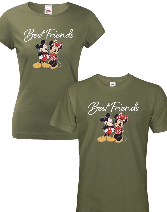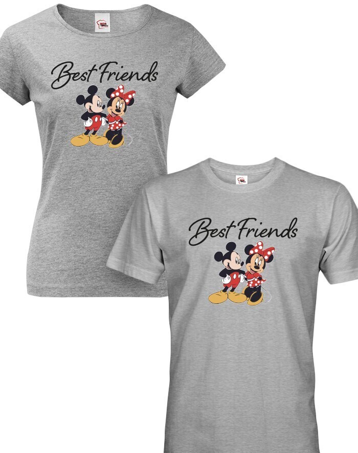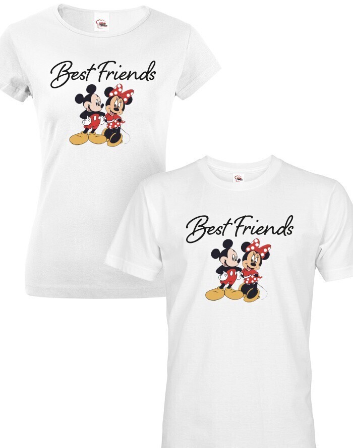 Originálne a vkusné párové tričká s potlačou Mickey a Minnie a nápisom "Best friends" zaručene poteší každý pár. Ukážte svetu, že vy dvaja k sebe jednoducho patríte. Mickey a Minnie majú len jeden vzťah, a to vzťah lásky. Párové tričká sú skvelým darčekom na Valentína, na výročie alebo len tak pre potešenie vašej polovičky.
