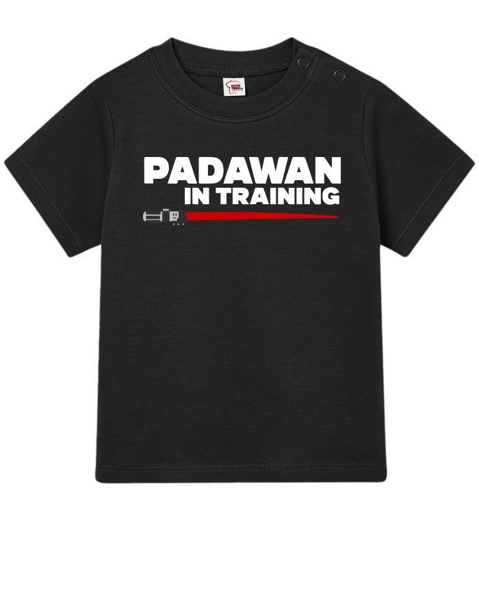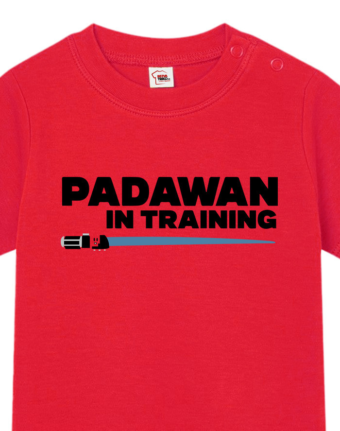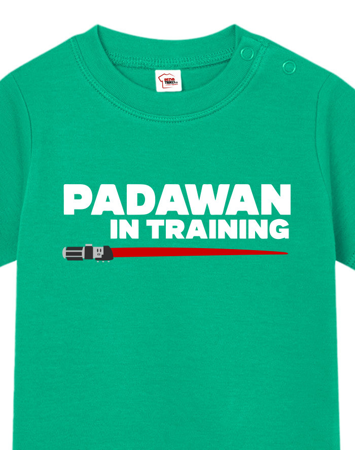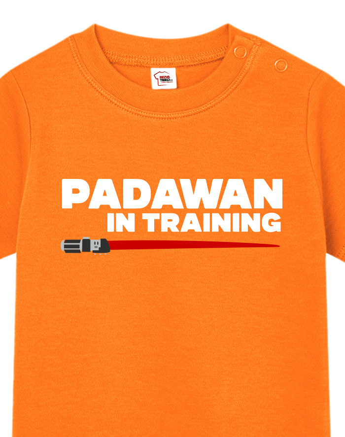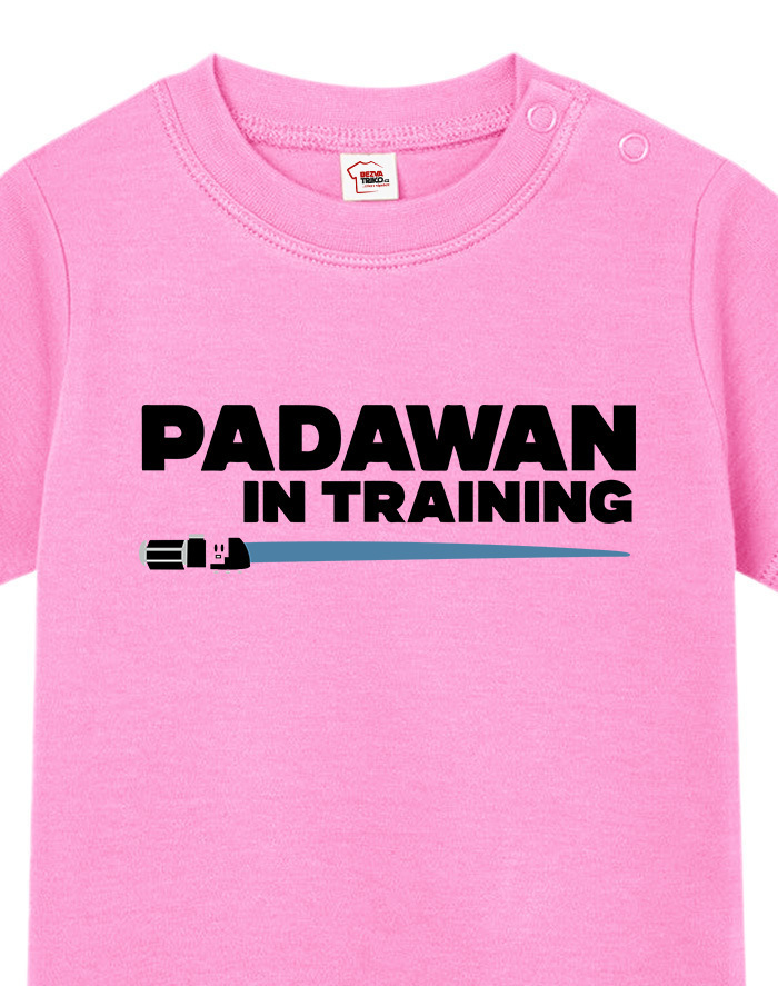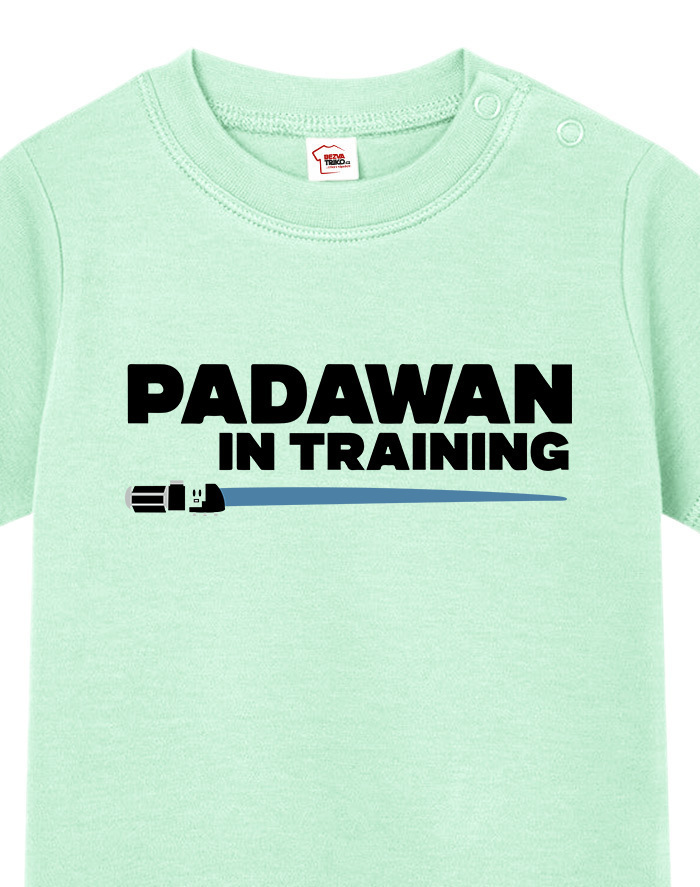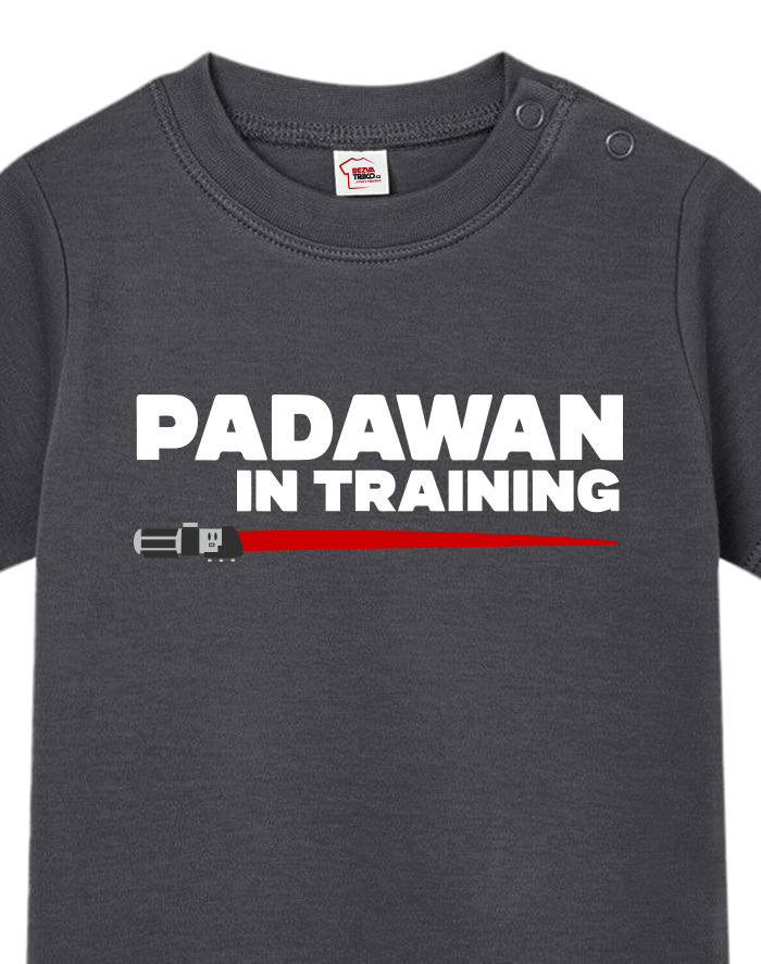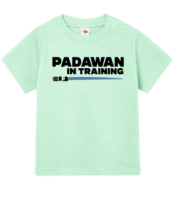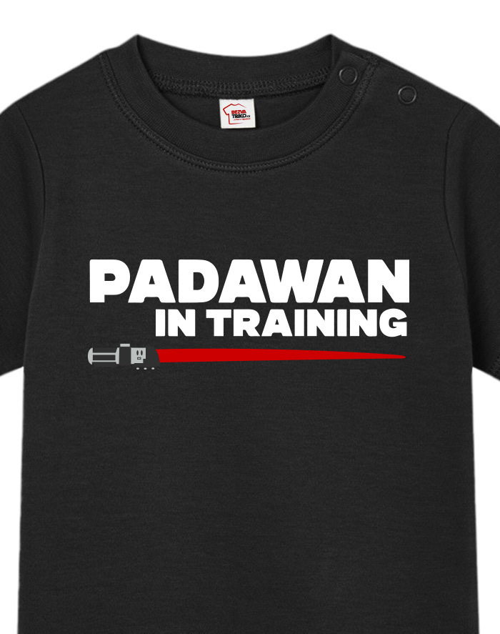 Tričko pro miminka s potiskem Padawan na motivy ságy Star Wars. Je třeba být stylový již od plenek. Stylové unisex dětské tričko pro všechny dívky a chlapce, jejichž rodiče jsou nadšení fanoušci Star Wars. Skvělý dárek k narozeninám či Vánocům.