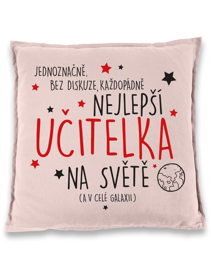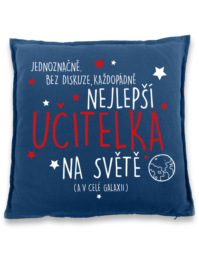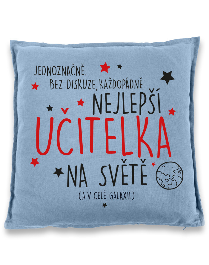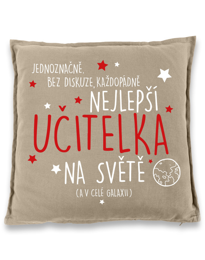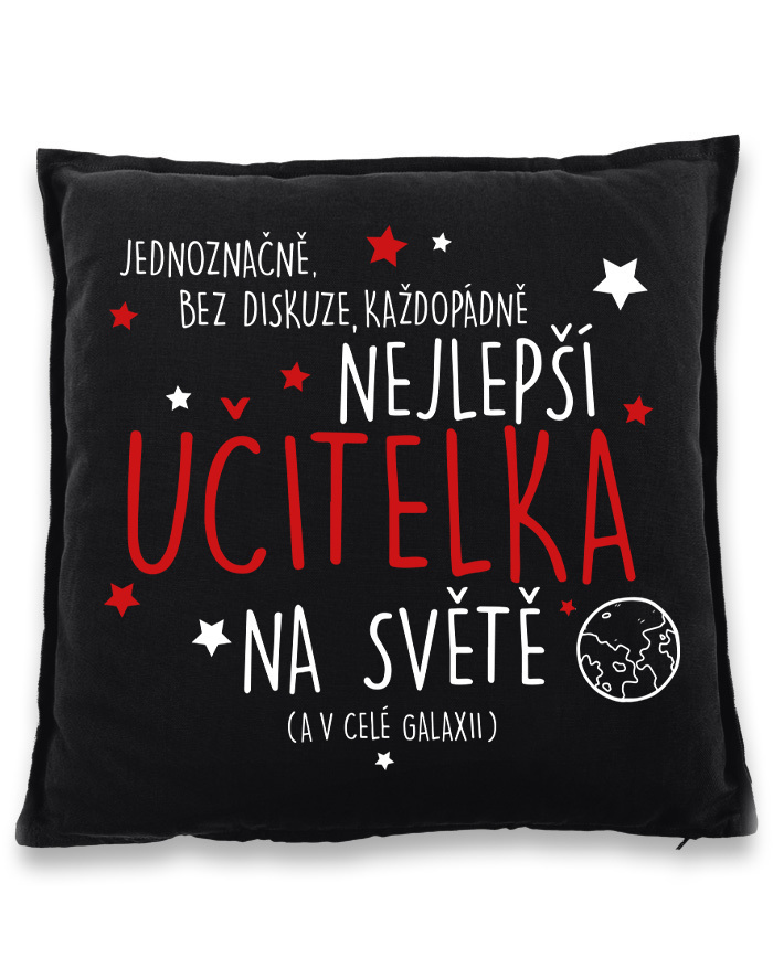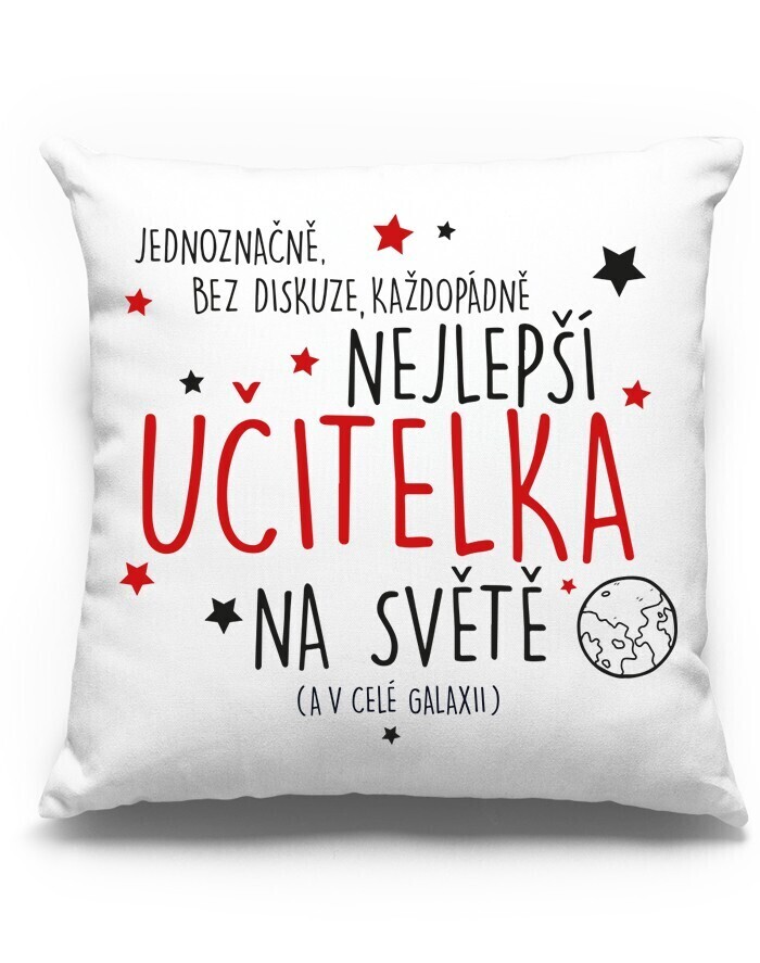 Prezrieť hodnotenie na Heureka.skKaždý žiak má určite svoju obľúbenú učiteľku. Polstárek s nápisom "Jednoznačne bez diskusie, každopádne najlepšia učiteľka na svete (aj v celej galaxií)" je skvelý darček ku dňu učiteľov alebo na konci školského roka. Krásný hrnček, ktorý ocení každá učiteľka. Buď originálny a daruj parádny darček. Pokiaľ máš obľúbenú učiteľku, tento polstárek ti dá skvelú možnosť ako sa jej poďakovať za všetko.
