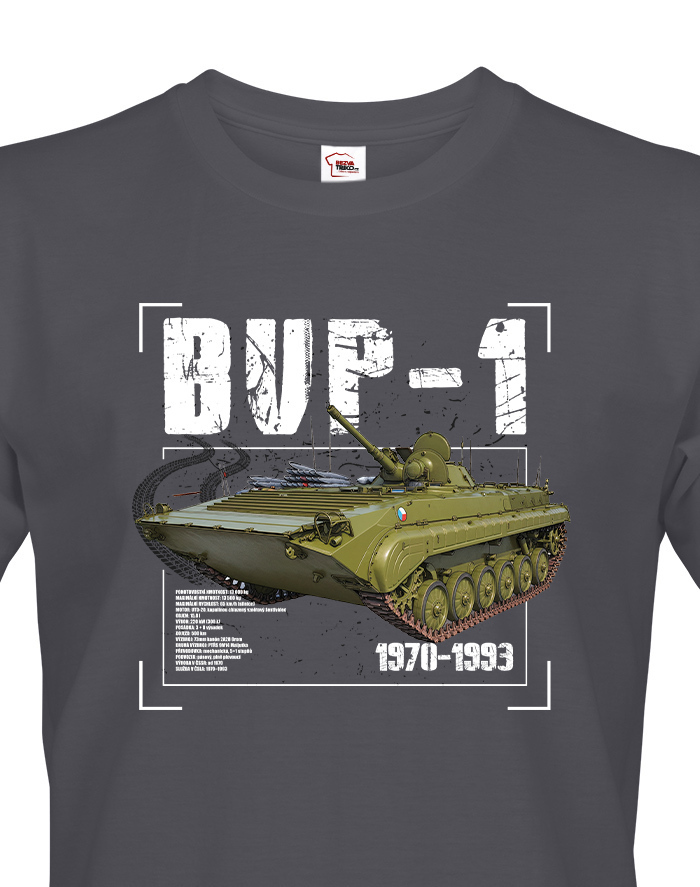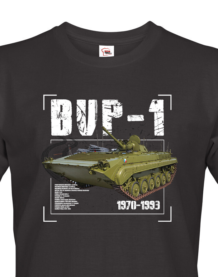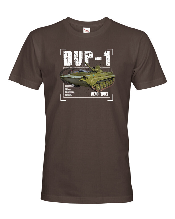 Pánske TRIČKO BVP-1 je skvelé pre mužov, ktorí majú radi originálne oblečenie s vojenskou tématikou. Na tričku je vyobrazený legendárny BVP-1, československé obrnené bojové vozidlo pechoty z 70. rokov, známe svojou univerzálnosťou a spoľahlivosťou. Tričko je vhodné na každodenné nosenie, výlety aj stretnutia s priateľmi a vďaka kvalitnému materiálu a pohodlnému strihu sa budete cítiť komfortne celý deň. BVP-1 je tiež ideálnym darčekom k narodeninám, Vianociam alebo iným príležitostiam. Hodí sa pre všetky vekové kategórie a fanúšikov vojenskej techniky a histórie. Tričko ľahko skombinujete s džínsami, kraťasmi alebo športovými nohavicami. Originálny potlač BVP-1 dodá outfitu výrazný charakter a ukáže váš záujem o vojenskú históriu. Tento kúsok je štýlový, praktický a odolný a poteší každého nadšenca vojenskej techniky.