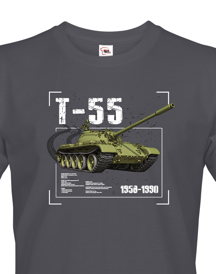 Objavte pánske tričko T-55, ktoré spája pohodlie, štýl a nadšenie pre vojenskú históriu. Toto tričko je ideálne pre mužov všetkých vekových kategórií, ktorí majú radi tanky alebo chcú nosiť originálny dizajn s historickým motívom. Materiál je kvalitný a príjemný na dotyk, takže sa hodí na každodenné nosenie aj voľnočasové aktivity. T-55 bol hlavným tankom ČSĽA od 60. do 90. rokov, takže tento motív ocení každý, kto má rád československú vojenskú históriu. Je to tiež perfektný darček k narodeninám, Vianociam alebo iným výnimočným príležitostiam, ktorý poteší každého milovníka histórie. Tričko vynikne nielen na stretnutiach s priateľmi, ale aj na výletoch, piknikoch alebo pri posedení v meste. Je vhodné na každodenné nosenie, športy alebo tematické akcie, kde chcete ukázať svoj štýl a záujem o históriu. Dizajn je odolný a dlho vydrží, takže sa nemusíte báť častého prania. Ak hľadáte kombináciu štýlu, kvality a zaujímavého darčeka, pánske tričko T-55 je voľba, ktorá nikdy nesklame.