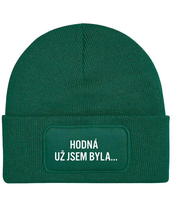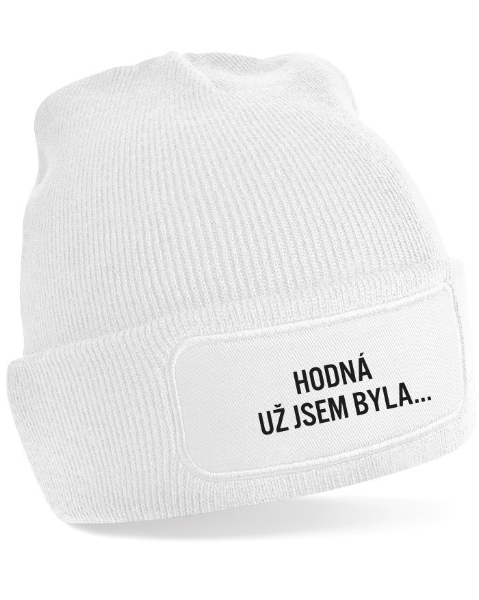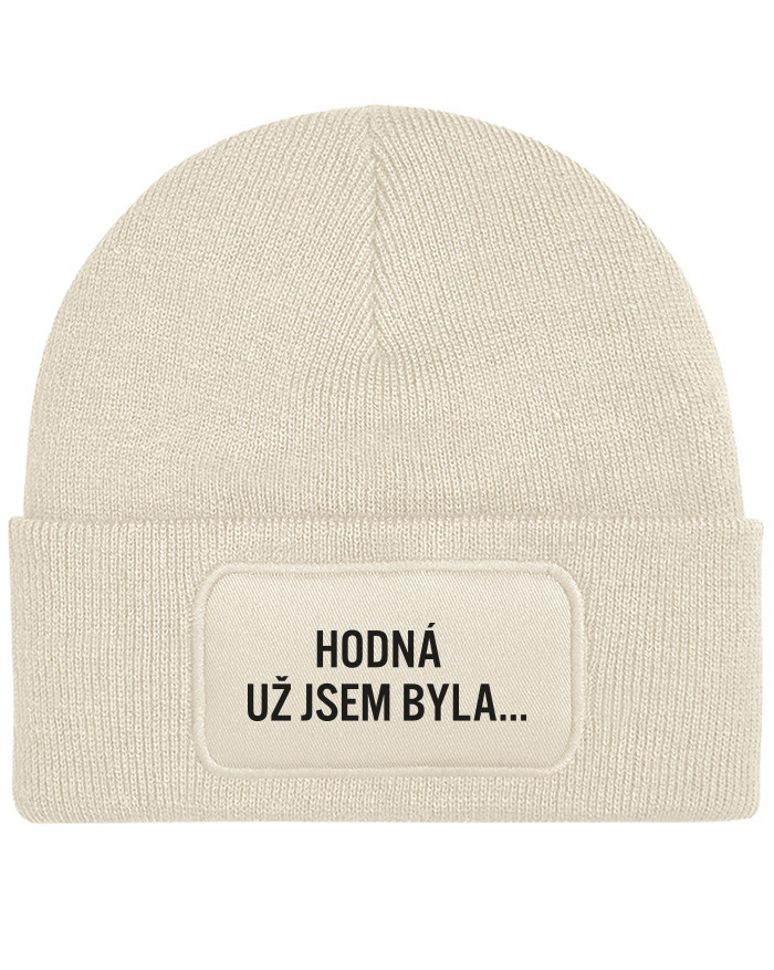 Unisex zimná čiapka s obdĺžnikovou nášivkou „Hodná už jsem byla“ je ideálny doplnok pre všetkých, ktorí sa chcú zahriať, no nechcú sa vzdať svojho štýlu.