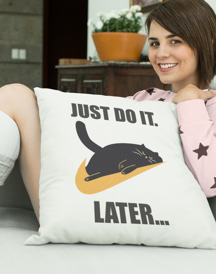 Vtipný vankúš s potlačou "Just do it later...." si zamilujete. Vankúš je skvelým darčekom pre mamu, babku, sestru, kamarátku alebo pre teba. Riadíte sa pravidlom "čo môžeš urobiť dnes, odlož na pozajtra"? Ak už máte v pláne čokoľvek, neponáhľajte sa, urobte to až zajtra alebo až pozajtra...
