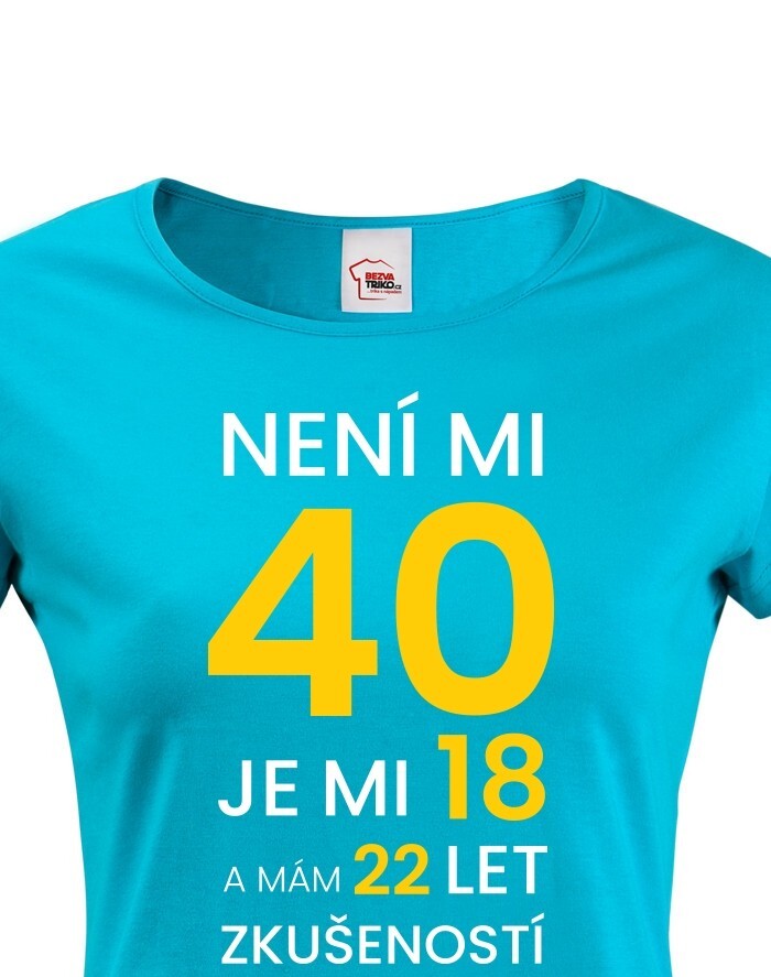 Prezrieť hodnotenie na Heureka.skDámské narodeninové tričko s potlačou k 40. narodeninám "Nie je mi 40 je mi 18 a mám 22 rokov skúseností" rozosmeje každého, kto si potlač prečíta. Veď predsa vek nie je žiadna hanba. Tričko pre oslávenca okrúhlych narodenín - pre všetkých, ktorí chcú v 40. rokov vyzerať naozaj cool! Tričko sa ideálne hodí ako darček na narodeniny pre mamu, sestru či tetu.