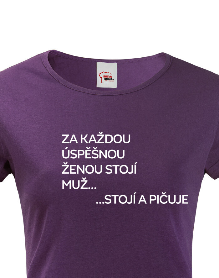 Dámské tričko Za každou úspešnou ženou stojí muž