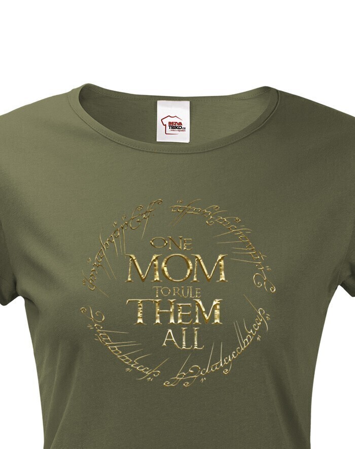 Prezrieť hodnotenie na Heureka.skOriginální triko s potiskem pro maminky na motivy oblíbené série Pán Prstenů. Potisk "One Mom to Rule Them All" není jistě potřeba fanouškům Tolkiena představovat. Pokud hledáte vtipný a originální dárek pro maminku a případně také navíc fandu fantasy, tohle tričko si jistě zamiluje. Překlad jistě není potřeba doplňovat, ale pokud přeci "Jedna máma vládne všem" :) Potisk je natištěn efektní zlatou barvou.